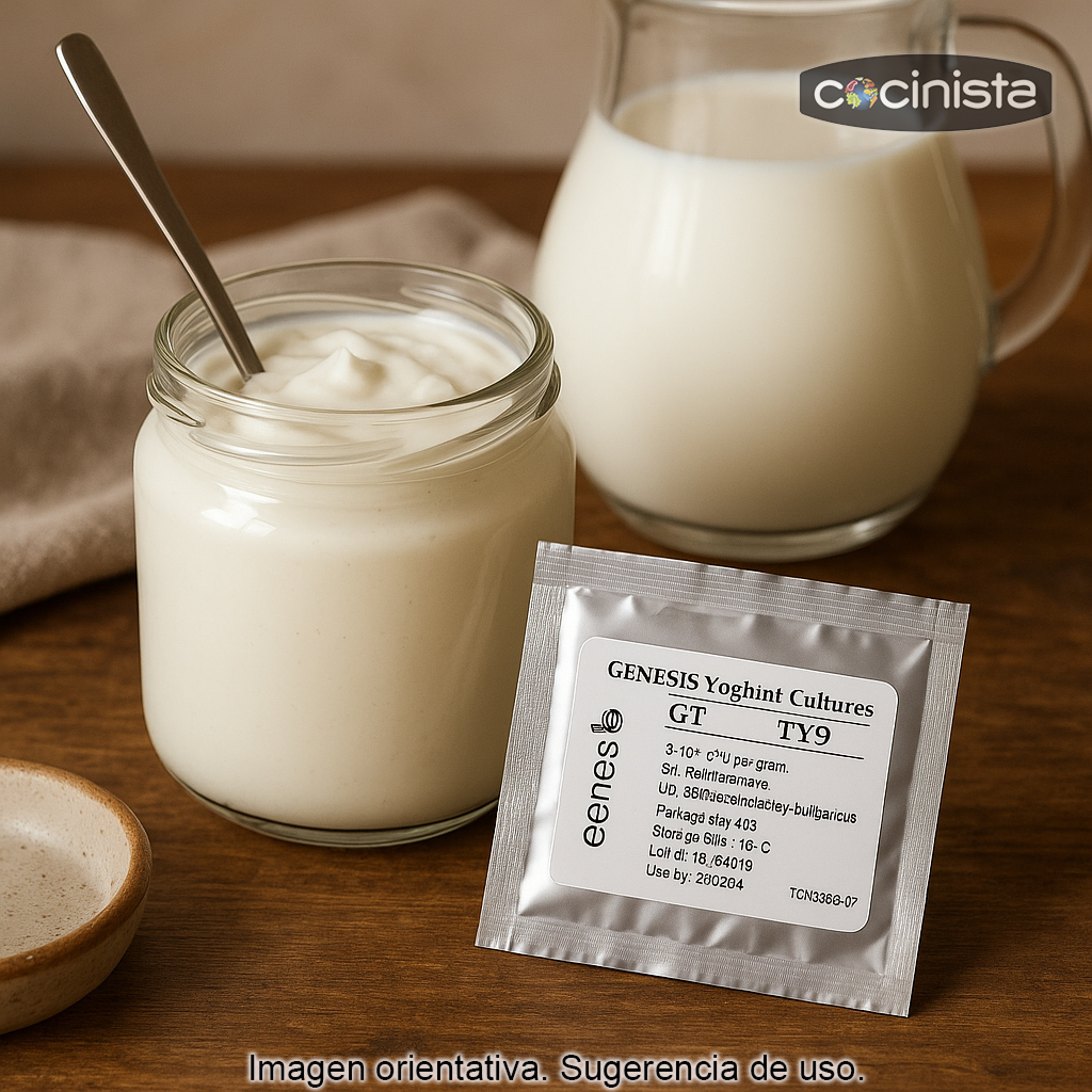 Este sobre contiene bacterias vivas liofilizadas (cultivo 100% puro), sin conservantes, sin azúcares y sin aditivos. La dosis está pensada para fermentar hasta 50 litros de leche en total, y además permite reutilizar la cepa mediante resembrados (usando parte del yogur elaborado como iniciador para nuevas tandas).