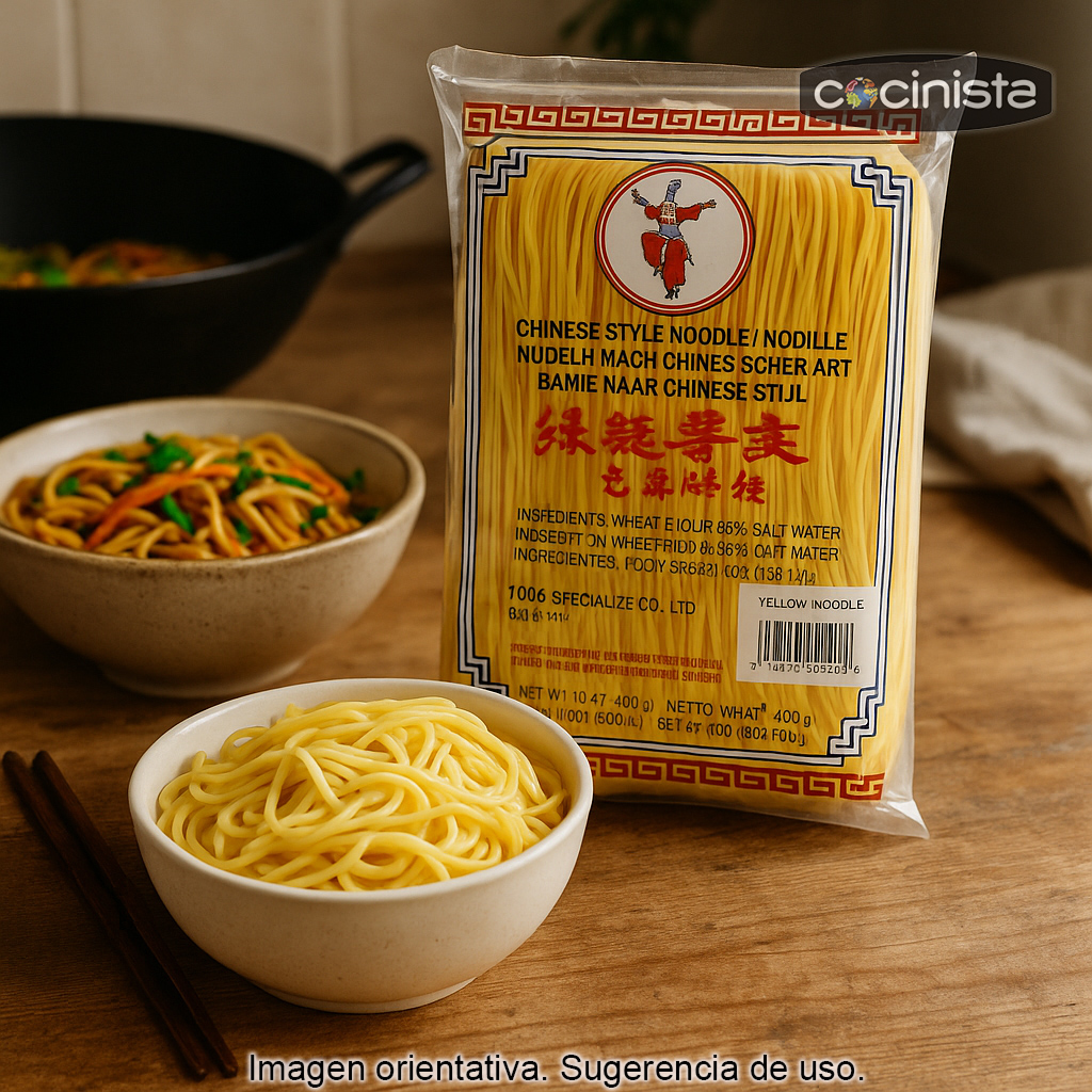 Los fideos chinos amarillos son un ingrediente imprescindible para preparar en casa auténticas recetas de cocina asiática. Elaborados a base de harina de trigo, destacan por su color amarillo característico y por su textura firme y elástica, ideal para absorber salsas y mantener el punto en salteados, sopas y guisos.