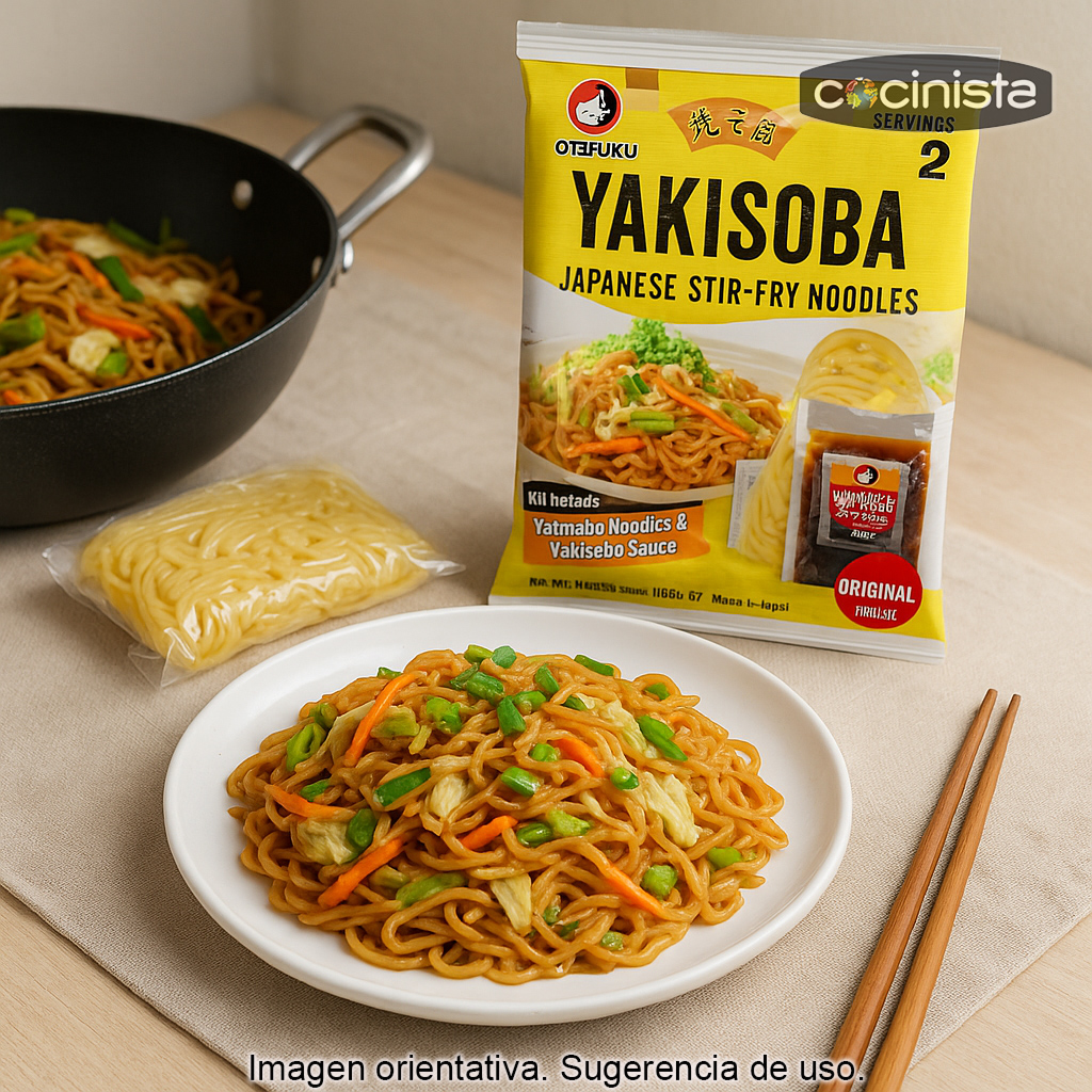 La yakisoba es un plato clásico japonés de fideos salteados, normalmente acompañado de verduras y, si lo deseas, proteínas como pollo, cerdo, gambas o tofu. Gracias a los fideos ya cocidos, solo necesitas calentarlos y saltearlos para conseguir una textura jugosa y un acabado delicioso.