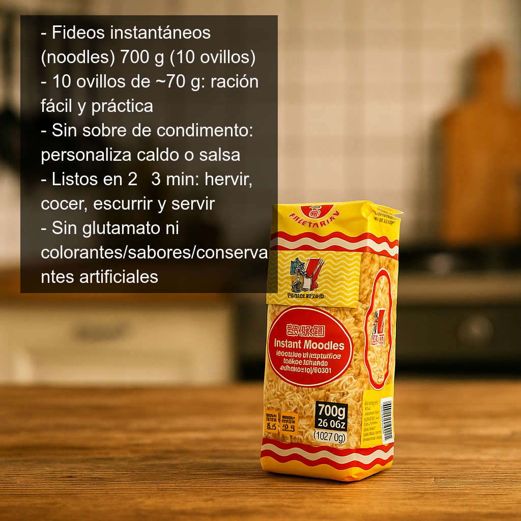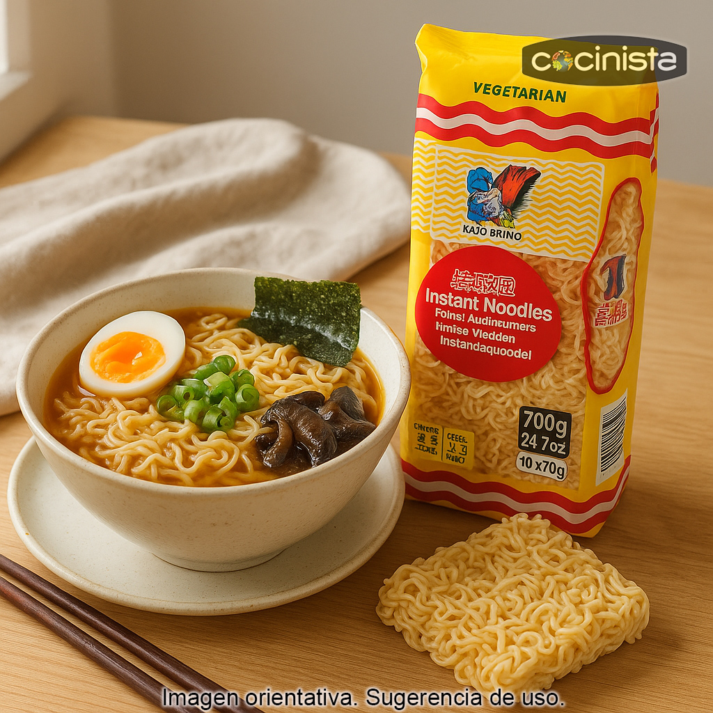 Prepara en casa tus platos asiáticos favoritos con estos fideos instantáneos (noodles) en formato ahorro de 700 g, ideales para montar un ramen casero, sopas rápidas, salteados tipo wok o guisos con caldo en solo unos minutos. Son fideos pensados para que tú les des el toque final: no incluyen sobre de condimento, así que puedes combinarlos con tu caldo, salsa o base preferida (miso, shoyu, tonkotsu, curry, salsa de soja, sésamo, picante, etc.).