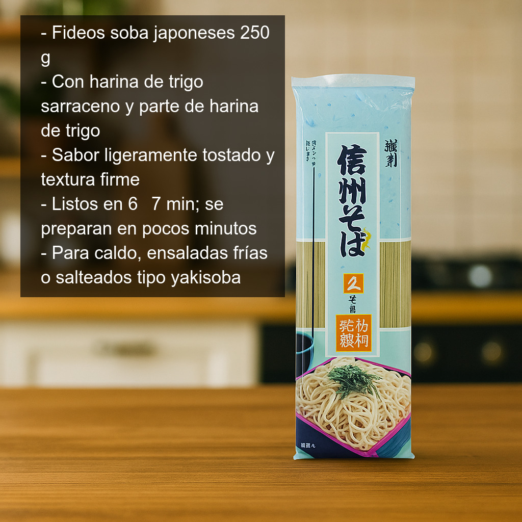 Los fideos soba japoneses son una de las pastas más emblemáticas de Japón. Elaborados tradicionalmente con harina de trigo sarraceno (soba) y, según la receta, una parte de harina de trigo para mejorar la elasticidad, destacan por su sabor ligeramente tostado y su textura firme. Son muy populares tanto en la comida rápida japonesa como en la cocina casera, porque se preparan en pocos minutos y admiten multitud de combinaciones: en caldo caliente, en ensaladas frías, salteados tipo yakisoba o como acompañamiento de verduras, setas, tofu, pollo o marisco.