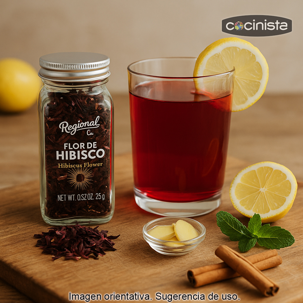 La Flor de Hibisco, también conocida como Flor de Jamaica, es una flor seca muy apreciada por su sabor afrutado y ligeramente ácido y por el intenso color rojo rubí que aporta a las bebidas. Es perfecta para preparar té de hibisco e infusiones frías o calientes, así como para dar un toque especial a cócteles, aguas saborizadas, limonadas y bebidas aromatizadas.