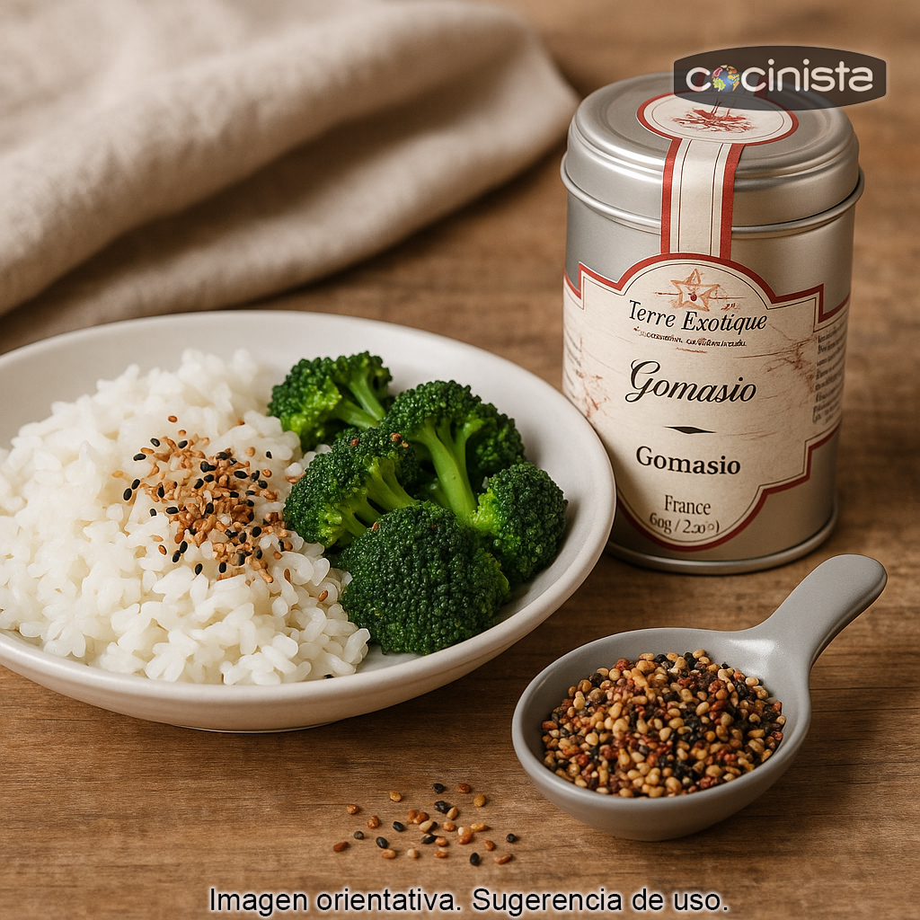Cómo usar el gomasio: se utiliza espolvoreado directamente sobre el alimento justo antes de servir, para disfrutar de todo su aroma y textura. Es perfecto para:
