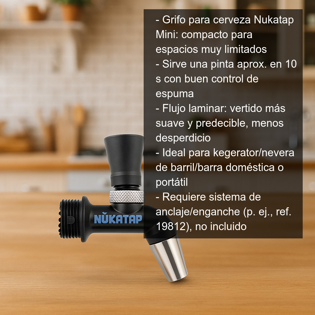 Si estás montando o mejorando tu equipo de tirador de cerveza, el Nukatap Mini es una solución compacta y eficiente para servir cerveza con buen control de espuma y un vertido rápido.
