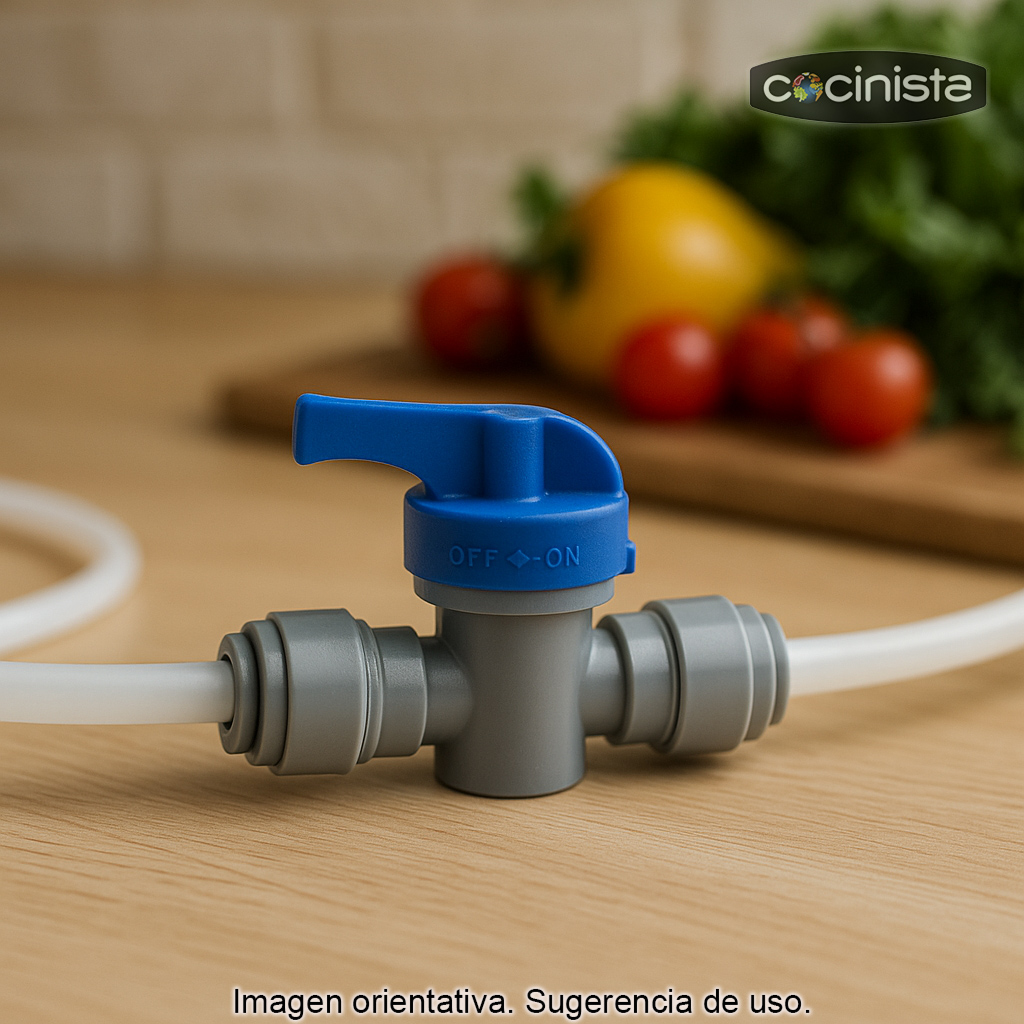 Este grifo es especialmente útil en sistemas donde se necesita cortar el paso o ajustar el caudal de manera cómoda: líneas de bebida, dispensación, trasvases, circuitos de gas o cualquier instalación con tubo de 3/8" en la que quieras añadir un punto de control intermedio. Su diseño compacto y su accionamiento sencillo lo convierten en un componente práctico tanto para montajes domésticos como para configuraciones más exigentes.