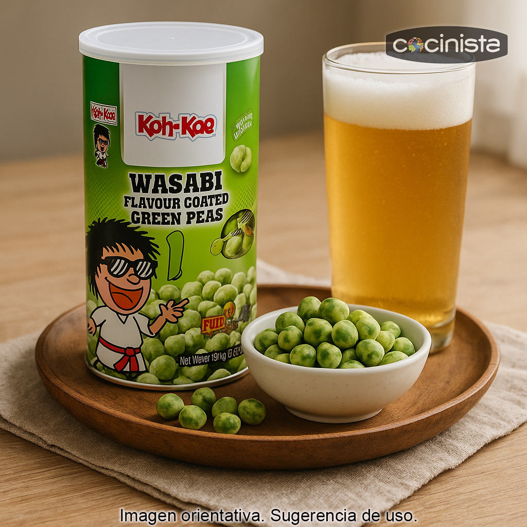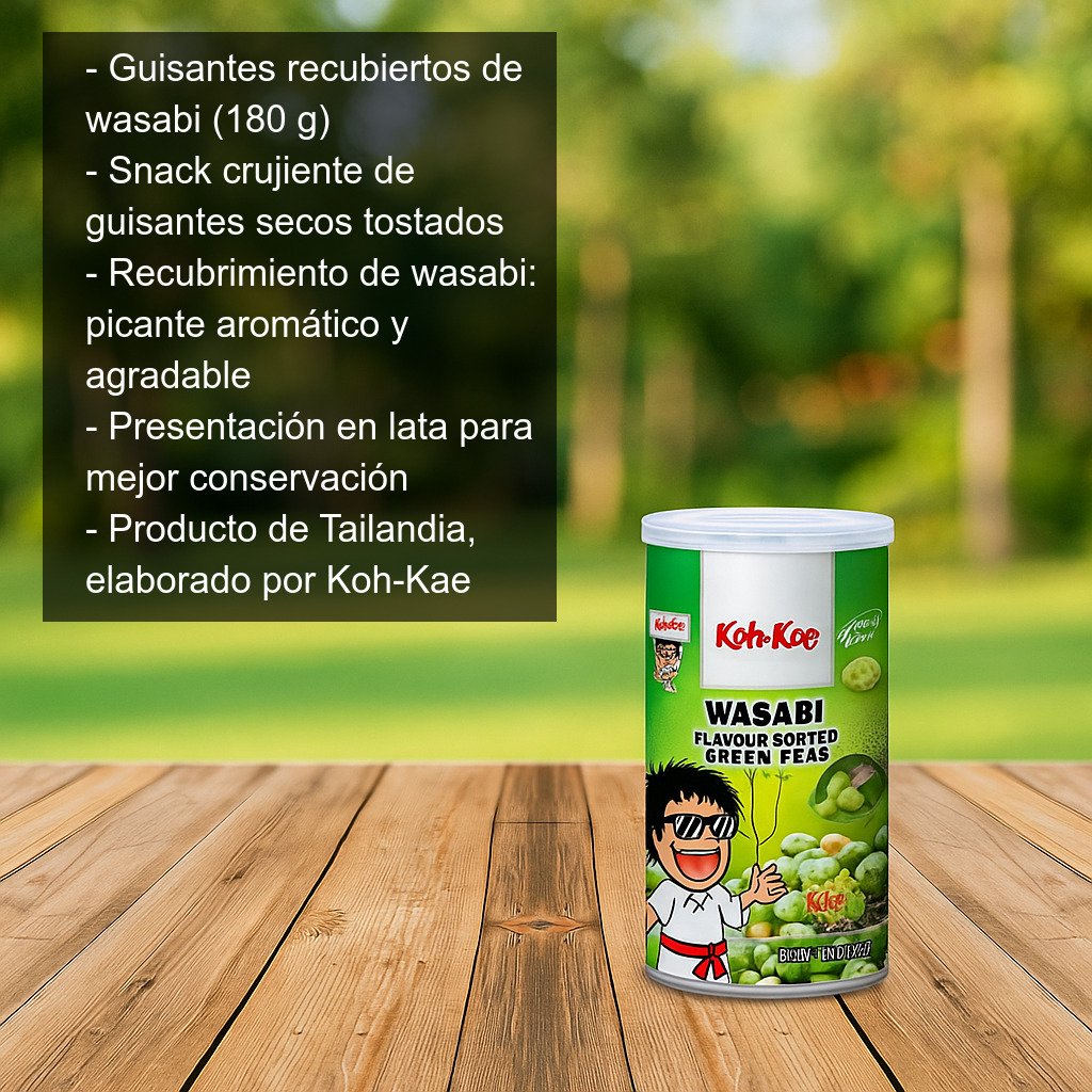 Los guisantes recubiertos de wasabi (180 g) son un aperitivo de inspiración japonesa perfecto para quienes buscan un snack crujiente, sabroso y con un toque picante inconfundible. Elaborados a partir de guisantes secos cuidadosamente tostados y recubiertos con una capa de wasabi, ofrecen un contraste irresistible entre el dulzor natural de la legumbre y el golpe aromático y ligeramente punzante del wasabi.