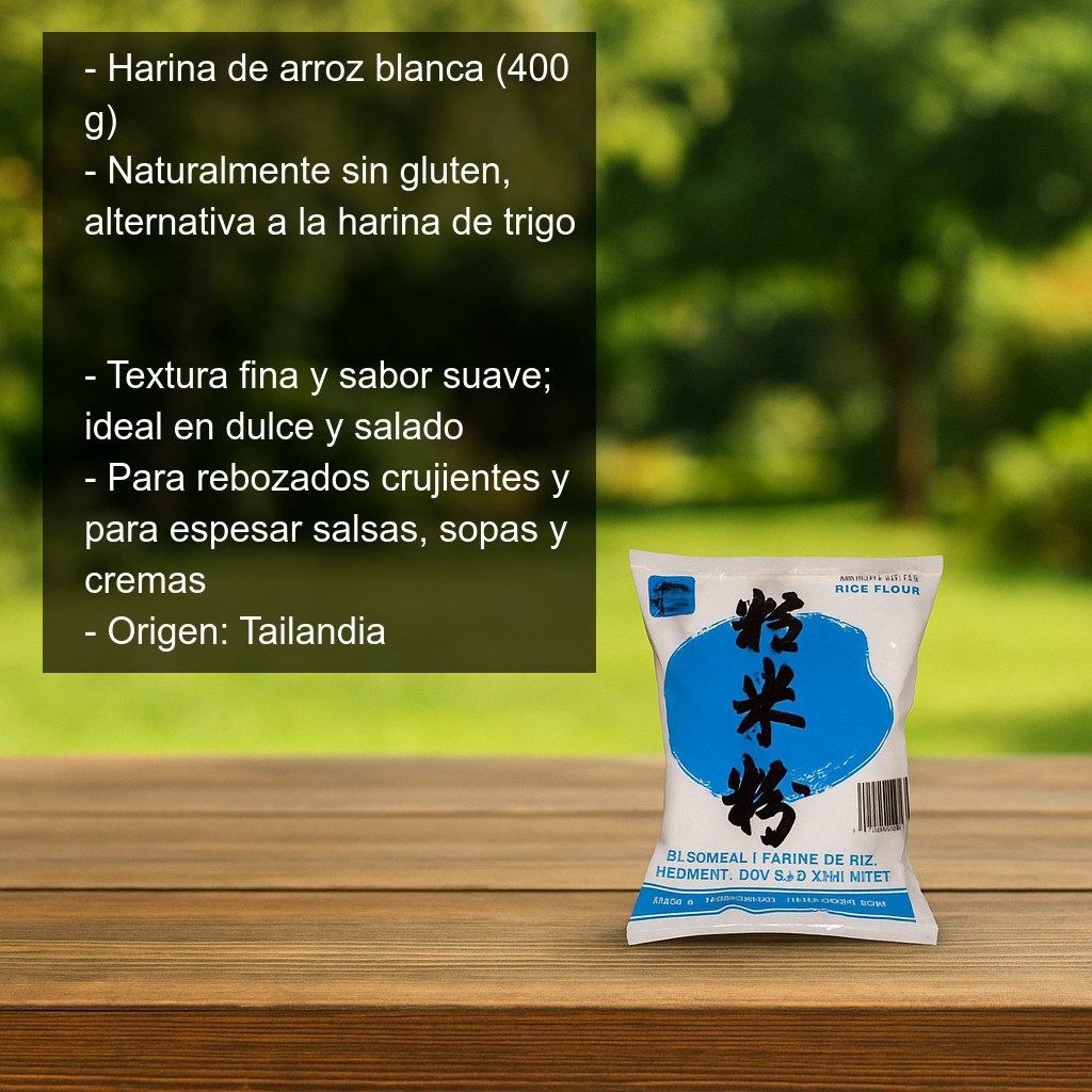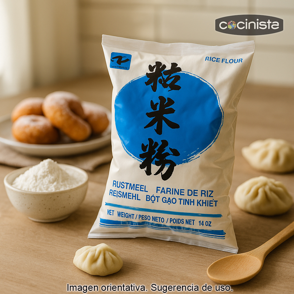 La harina de arroz es un ingrediente muy versátil y naturalmente sin gluten, por lo que resulta una excelente alternativa a la harina de trigo en muchas preparaciones. Su textura fina y su sabor suave la convierten en una opción ideal tanto para recetas dulces como saladas, aportando ligereza y un acabado delicado.