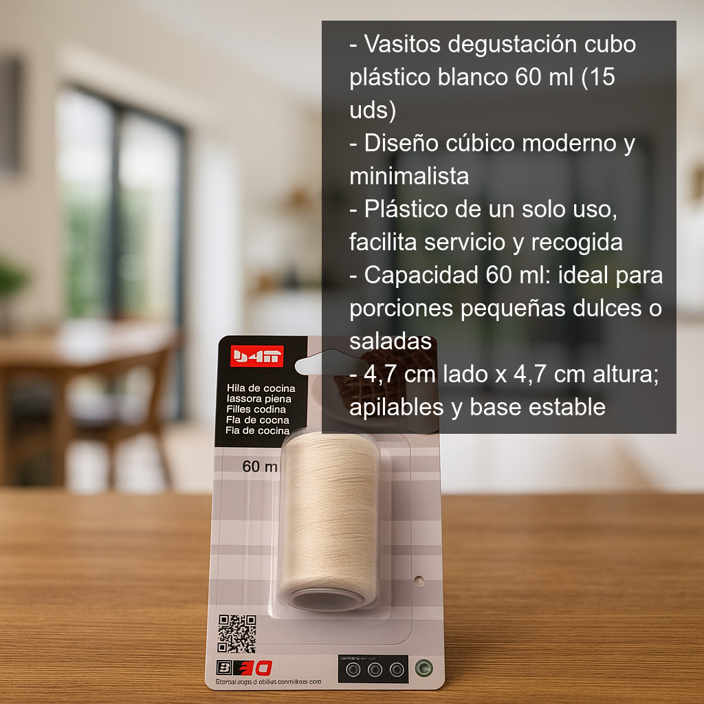 El hilo de cocina (60 m) es un cordel fino de algodón 100% natural especialmente pensado para tareas culinarias en las que necesitas atar, sujetar o dar forma a alimentos durante la preparación y la cocción. Es un básico imprescindible tanto en cocina doméstica como profesional para conseguir asados más uniformes, presentaciones más limpias y cocciones más controladas.
