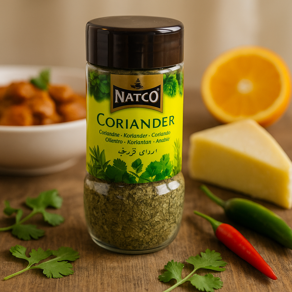Las hojas de cilantro deshidratadas (también conocidas como coriandro) pertenecen a la misma familia que el perejil, pero su perfil aromático es inconfundible: un sabor suave y cítrico, con un toque cálido y un ligero picor. Es una hierba imprescindible para dar frescura y complejidad a multitud de recetas de todo el mundo aunque en su forma deshidratada el sabor es mucho más sutil.