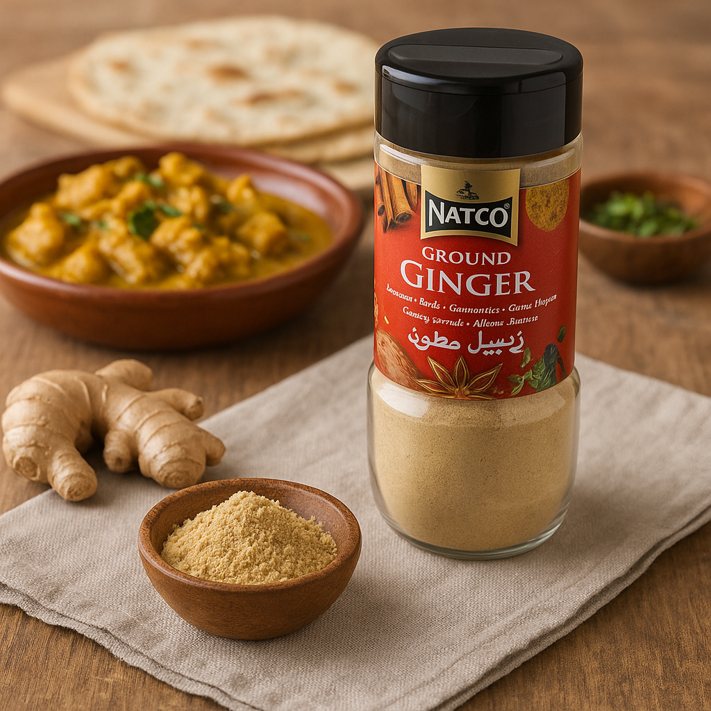El jengibre en polvo es una especia aromática y ligeramente picante, imprescindible en muchas cocinas del mundo. Muy utilizado en la cocina india, en la cocina asiática en general y en diversas regiones del norte de África, aporta un sabor cálido y fresco a la vez, con notas cítricas y un toque especiado que realza tanto platos salados como dulces.