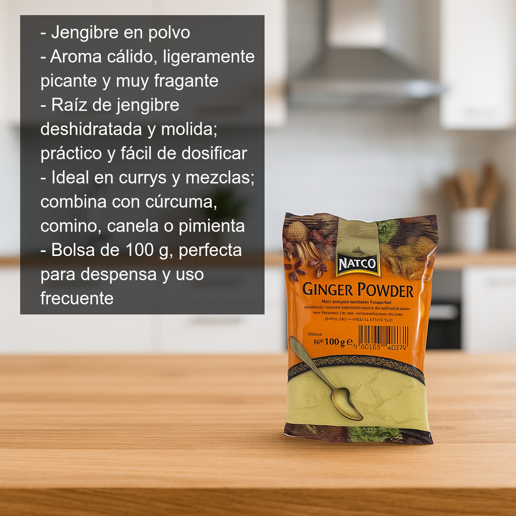 El jengibre en polvo es una especia aromática imprescindible para dar un toque cálido, ligeramente picante y muy fragante a tus recetas. Elaborado a partir de la raíz de jengibre deshidratada y molida, es una alternativa práctica al jengibre fresco: siempre listo para usar, fácil de dosificar y perfecto para tener en la despensa cuando necesitas sabor intenso sin pelar ni rallar.
