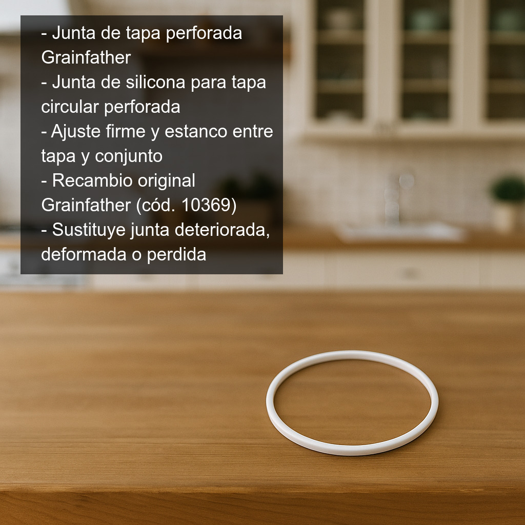 La junta de tapa perforada Grainfather es una junta de silicona diseñada específicamente para la tapa circular perforada de los sistemas Grainfather. Su función principal es asegurar un ajuste firme y estanco entre la tapa y el conjunto, ayudando a mantener el correcto funcionamiento del equipo durante el proceso de elaboración.