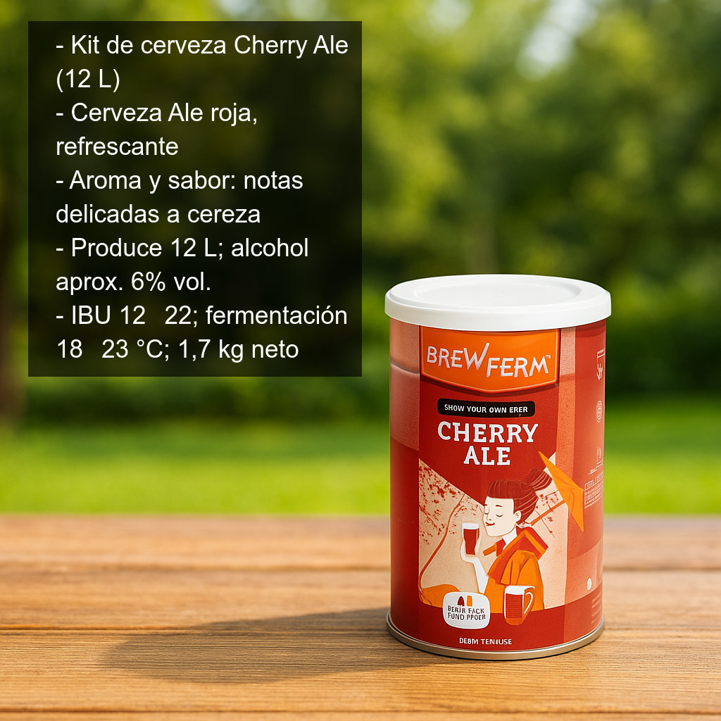 El Kit de cerveza Cherry Ale (12 L) es ideal para elaborar en casa una cerveza artesanal tipo Ale de color rojo, muy refrescante y con un aroma a cereza delicado y agradable. Su perfil afrutado y su amargor moderado la convierten en una opción perfecta para disfrutar bien fría, especialmente en los meses más calurosos del año.