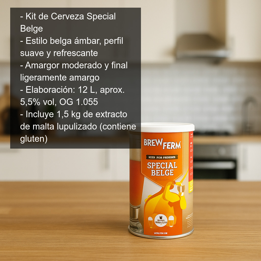 El Kit de Cerveza Special Belge (conocido anteriormente como Gallia por su fabricante) es una excelente opción para elaborar en casa una cerveza estilo belga de color ámbar, con un amargor agradable y un perfil de sabor suave, equilibrado y refrescante. Ideal tanto si estás empezando en el mundo de la cerveza artesanal como si buscas un kit fiable para obtener un resultado consistente.
