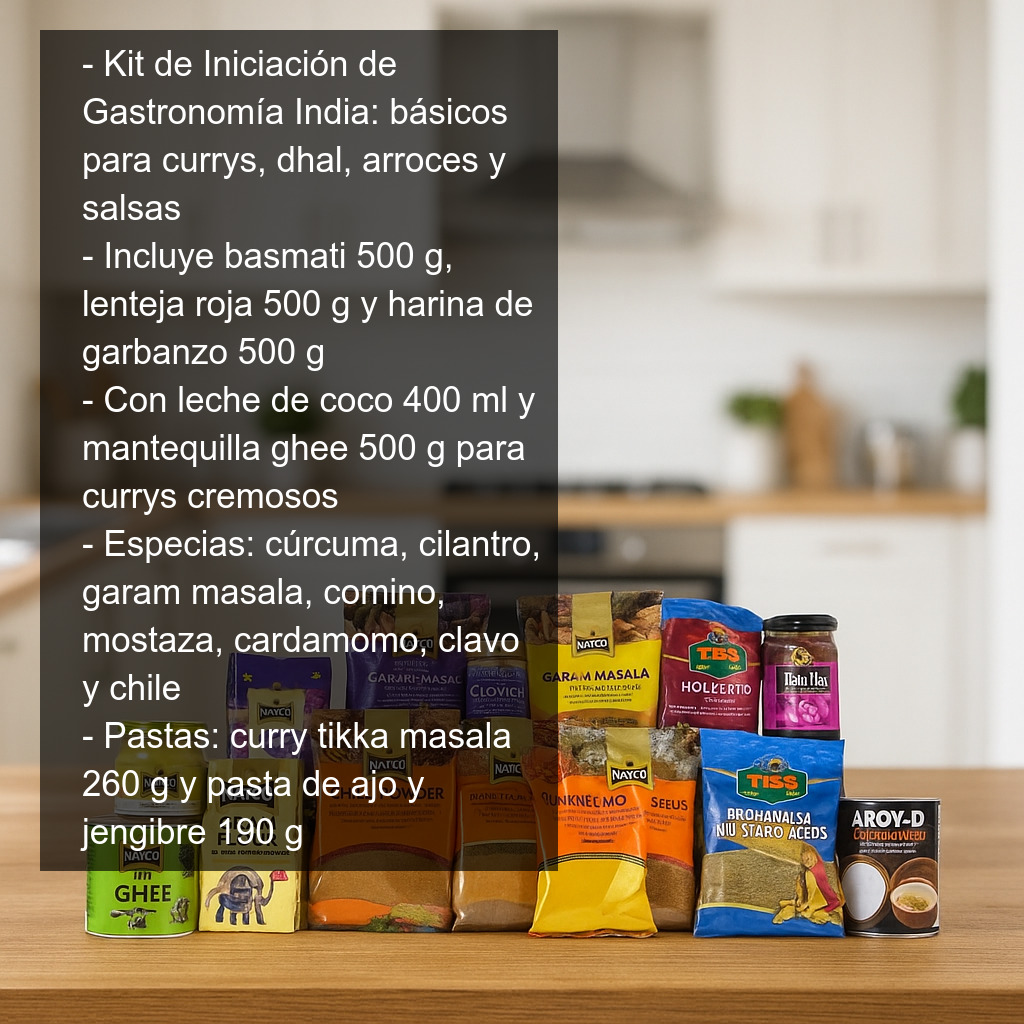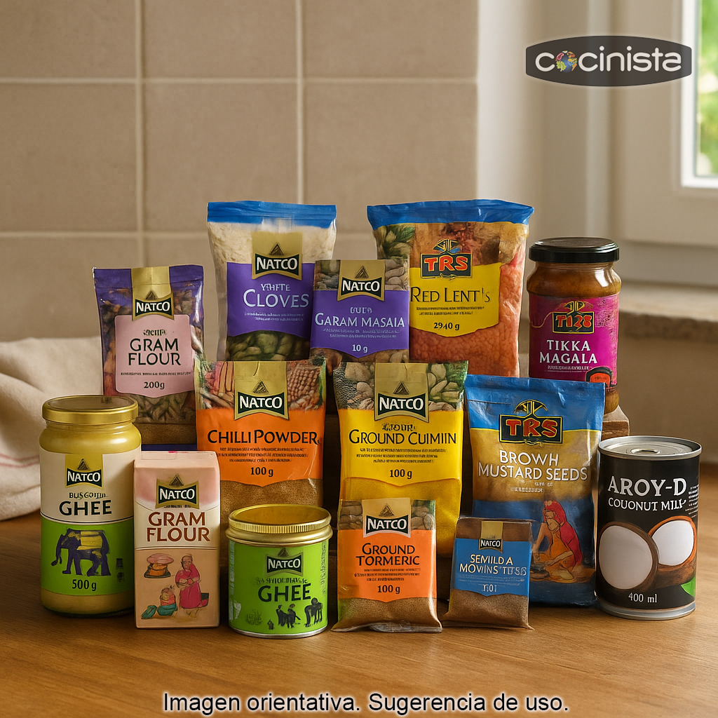 Este completo pack incluye ingredientes esenciales, cuidadosamente seleccionados para que experimentes la auténtica gastronomía india: