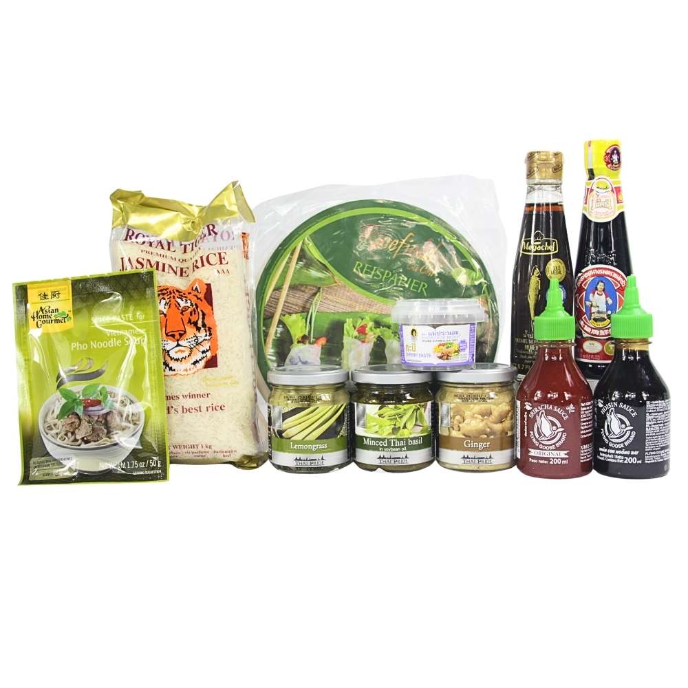 Incluye todos los ingredientes esenciales para reproducir la combinación perfecta de sabores salados, dulces, picantes y frescos que caracterizan a la gastronomía vietnamita.