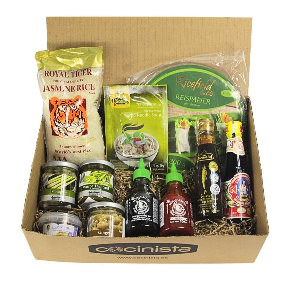 Descubre los sabores auténticos de Vietnam con este completo kit de iniciación, pensado para que prepares en casa platos tan emblemáticos como los rollitos frescos (goi cu?n), la sopa pho o el aromático arroz jazmín con verduras y carne.