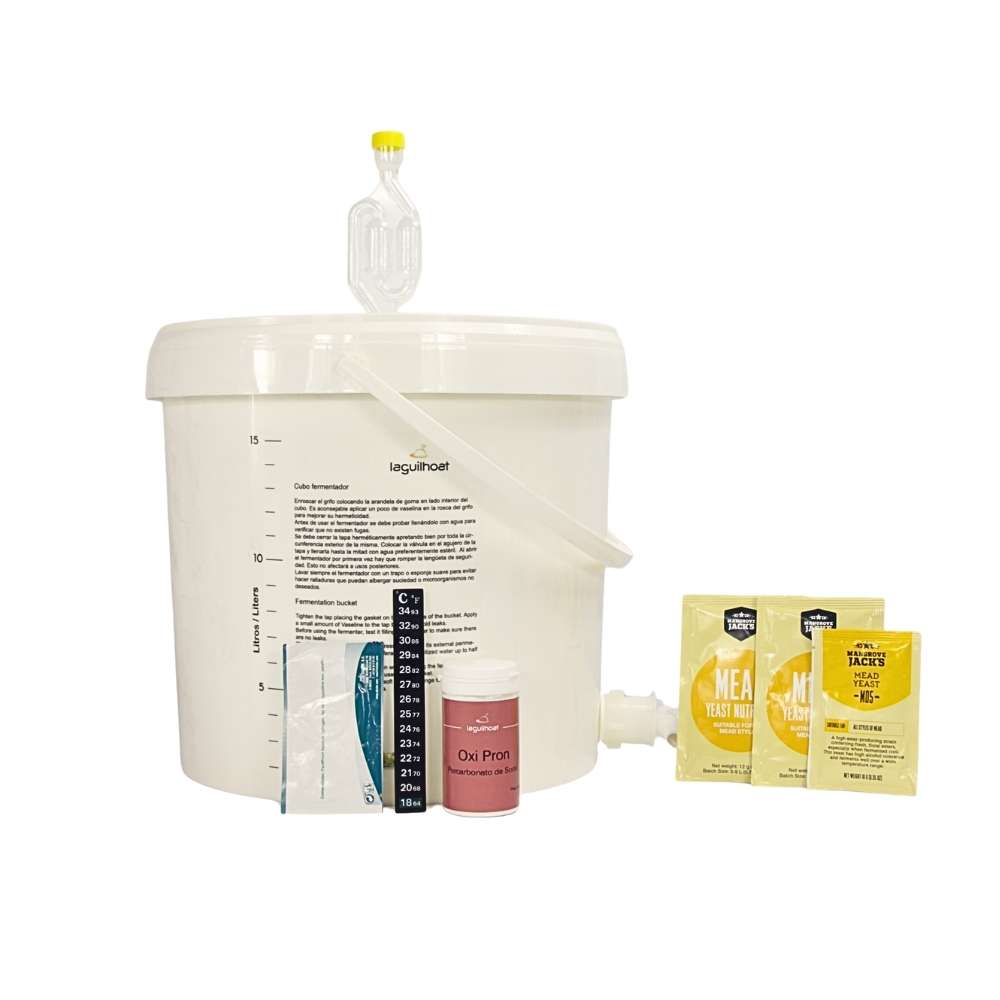 Este kit incluye todo el equipamiento esencial y los ingredientes clave para comenzar, incluso si no tienes experiencia previa en fermentaciones. Solo necesitarás añadir miel y agua para poner en marcha tu elaboración.
