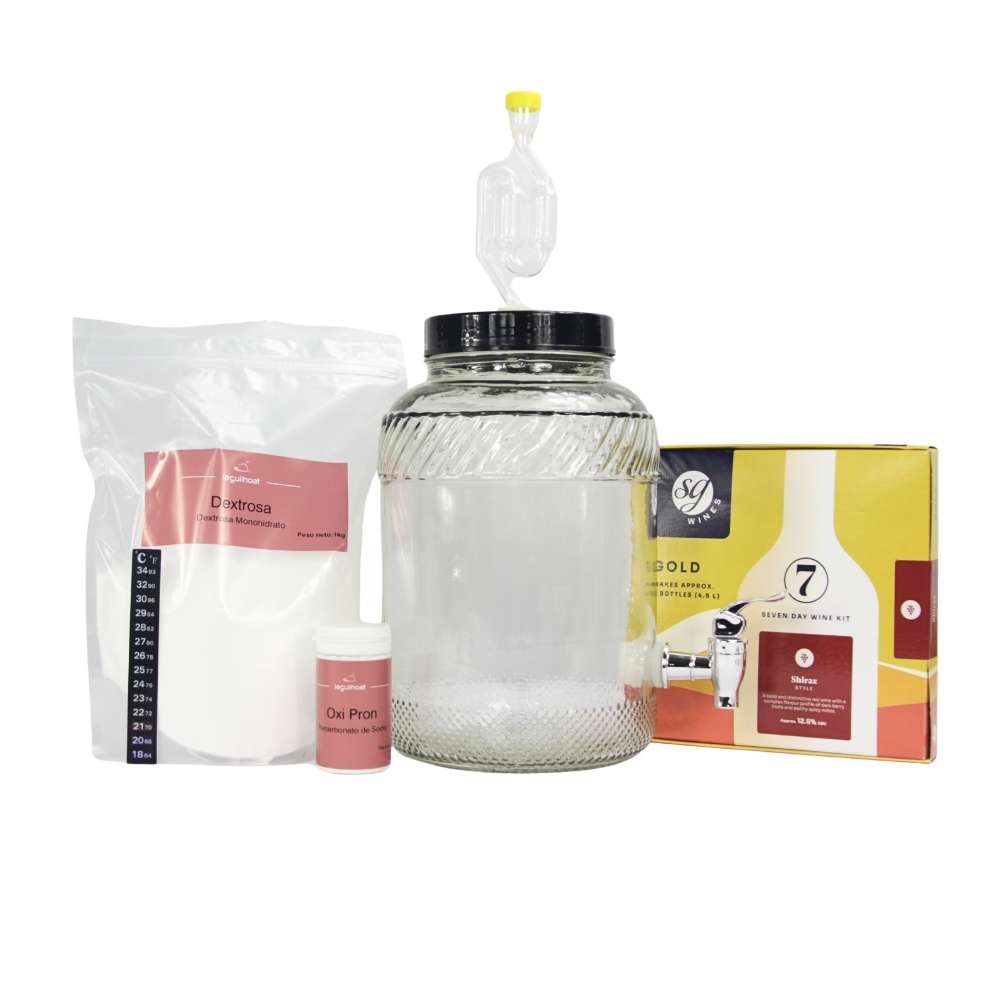 Kit de ingredientes para elaborar 4,5 L de vino Shiraz: Seleccionado para obtener un vino aromático, redondo y equilibrado, ideal para iniciarse en la elaboración de vino en casa.