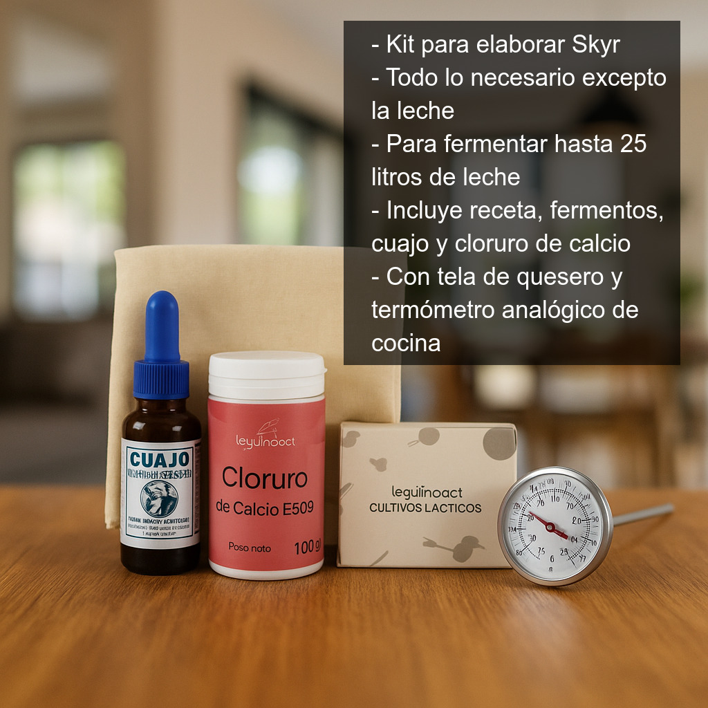 Con este Kit para elaborar Skyr tienes todo lo necesario (excepto la leche) para preparar Skyr casero de forma sencilla y con resultados consistentes. Los ingredientes incluidos permiten tratar hasta 25 litros de leche, para que puedas hacer varias tandas y ajustar el proceso a tu gusto: más cremoso, más firme o con un escurrido más intenso según la textura que prefieras.