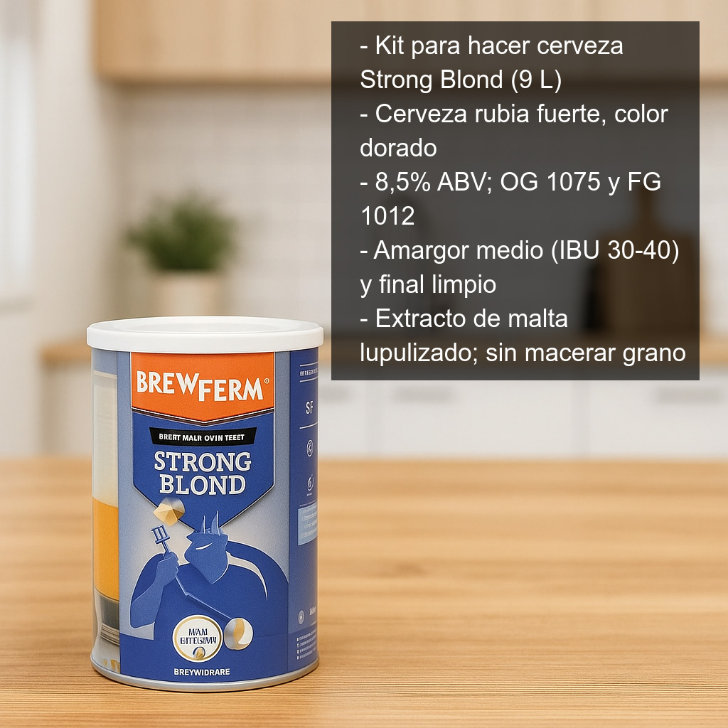 Si buscas un kit de cerveza rubia fuerte para iniciarte en la elaboración casera o para dar un salto a recetas con más cuerpo y graduación, este Strong Blond 9 L es una opción excelente por su equilibrio, su intensidad y su resultado final.