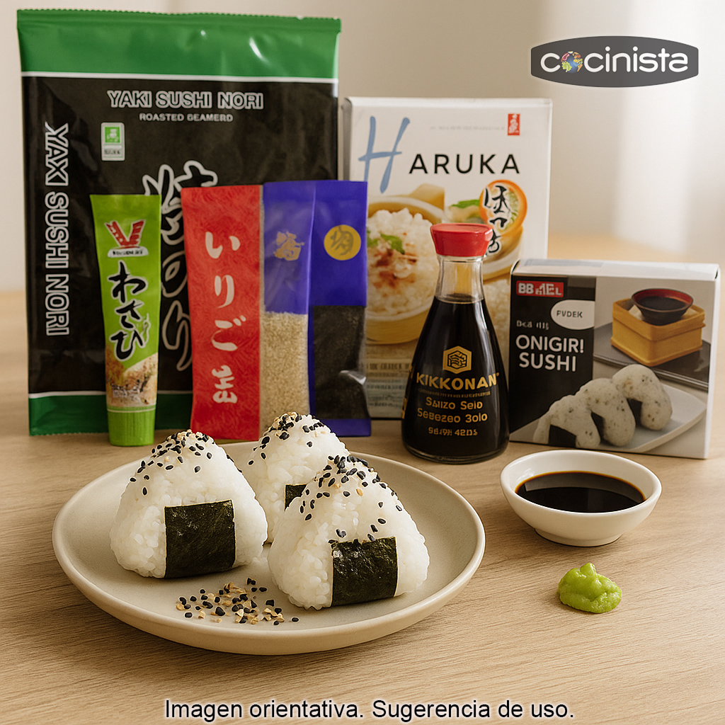 Este kit reúne ingredientes básicos para que puedas hacer onigiri de forma sencilla y con un resultado delicioso: arroz para sushi, salsa de soja, nori, wasabi y sésamo tostado para el toque final. Ideal para cenas rápidas, bentos, picoteo, meriendas o para sorprender con una receta japonesa casera.