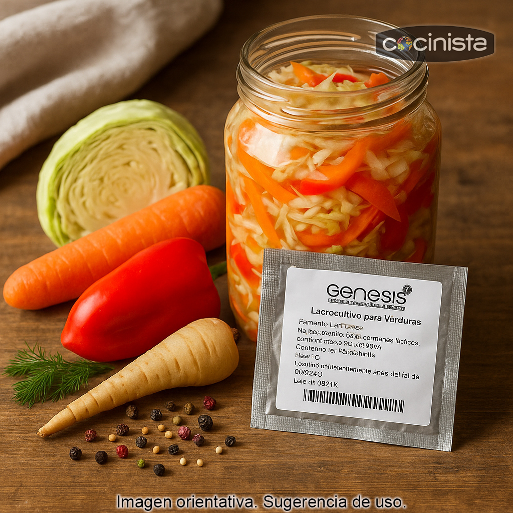 La lactofermentación de verduras es un método tradicional de conservación que, además de alargar la vida útil, potencia aromas y sabores y crea un entorno ácido que ayuda a proteger el alimento. Con este cultivo, puedes obtener fermentaciones más regulares, especialmente útil si estás empezando o si buscas repetir resultados.