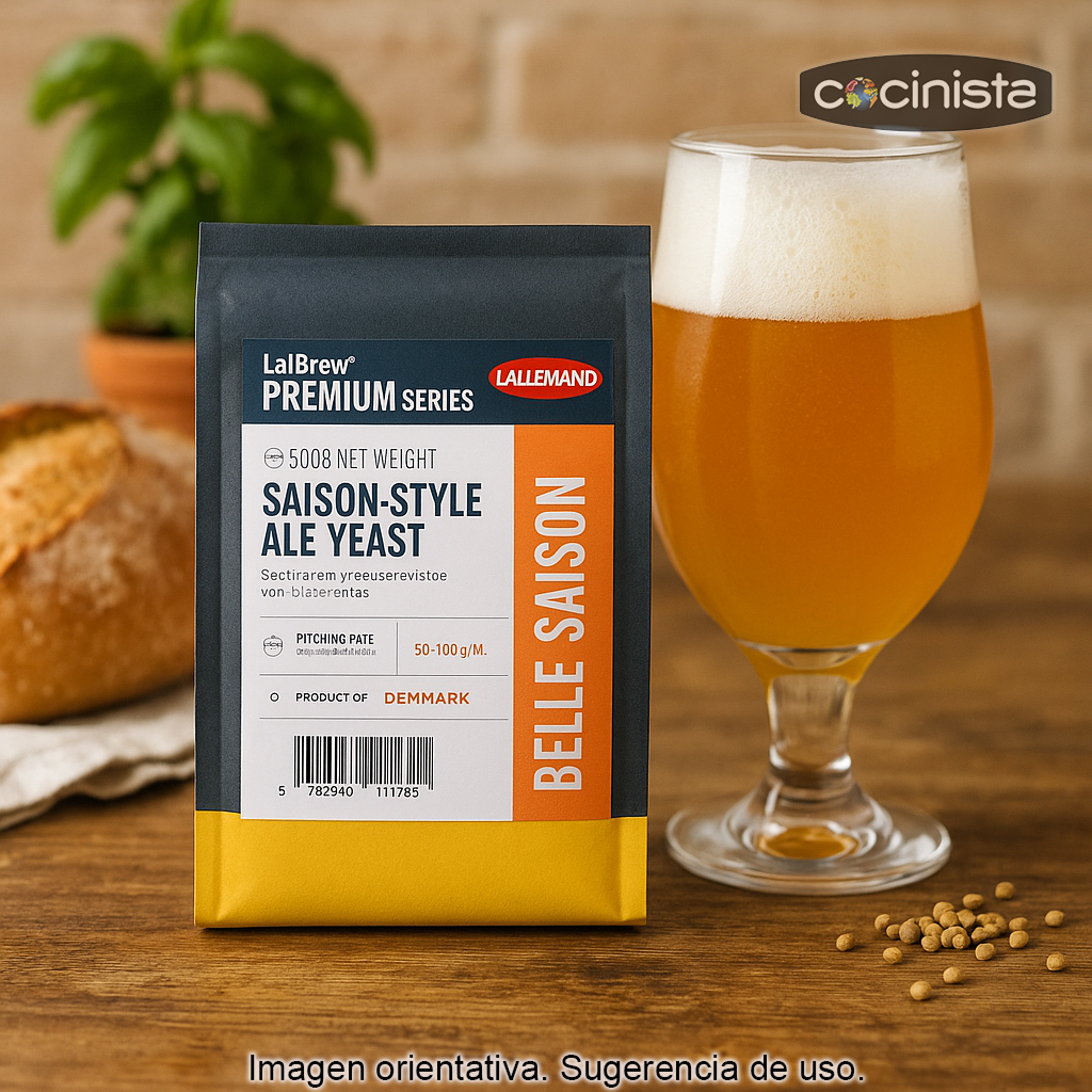 La levadura seca Belle Saison (Lallemand) 500 g es una cepa belga seleccionada, especialmente indicada para la elaboración de cervezas tipo Saison y otras cervezas de perfil especiado y afrutado. Se trata de una levadura muy diastática, capaz de fermentar azúcares complejos, lo que facilita un alto grado de atenuación y un final de fermentación más seco. El resultado son cervezas muy refrescantes, con carácter afrutado y un toque especiado típico de las saisons belgas.