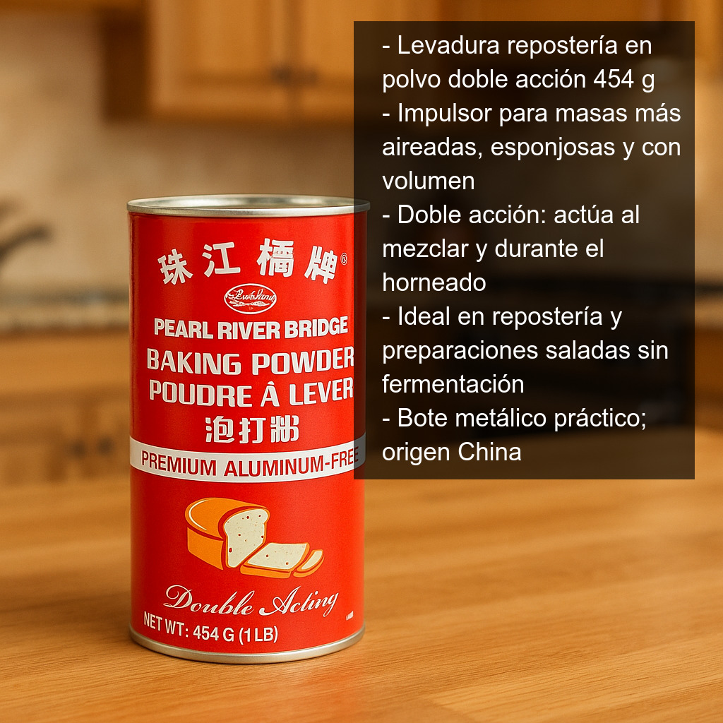 Se presenta en bote metálico con 454 g de producto, un formato práctico y duradero para uso frecuente en cocina y repostería.