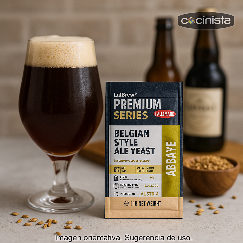 Esta cepa, conocida por Lallemand como Abbaye, destaca por su alta atenuación y su capacidad para trabajar en cervezas de mayor graduación, aportando un equilibrio muy interesante entre notas frutales y toques especiados típicos de las cervezas de abadía. Gracias a su tolerancia al alcohol de hasta el 14%, es una levadura ideal para recetas intensas, maltosas y con cuerpo, manteniendo una fermentación limpia y completa cuando se controla bien la temperatura.