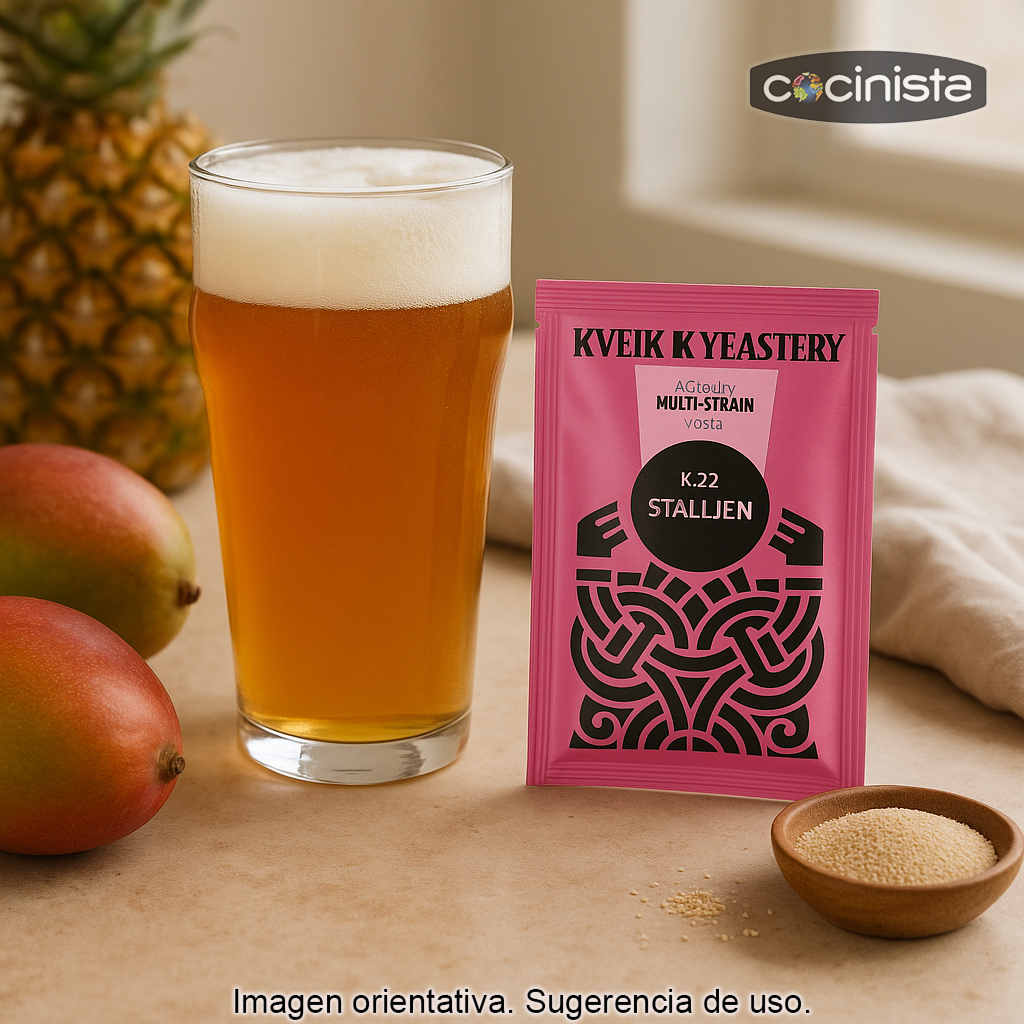 La levadura K.22 STALLJEN (7 g) es una levadura Kveik noruega de origen tradicional, procedente de Stig Seljeset (Hornindal, Noruega). Destaca por su enorme rango de trabajo y su capacidad para realizar fermentaciones muy rápidas incluso a temperaturas elevadas, lo que la convierte en una opción excelente para cerveceros que buscan eficiencia, limpieza y un perfil aromático frutal cuando se desea.