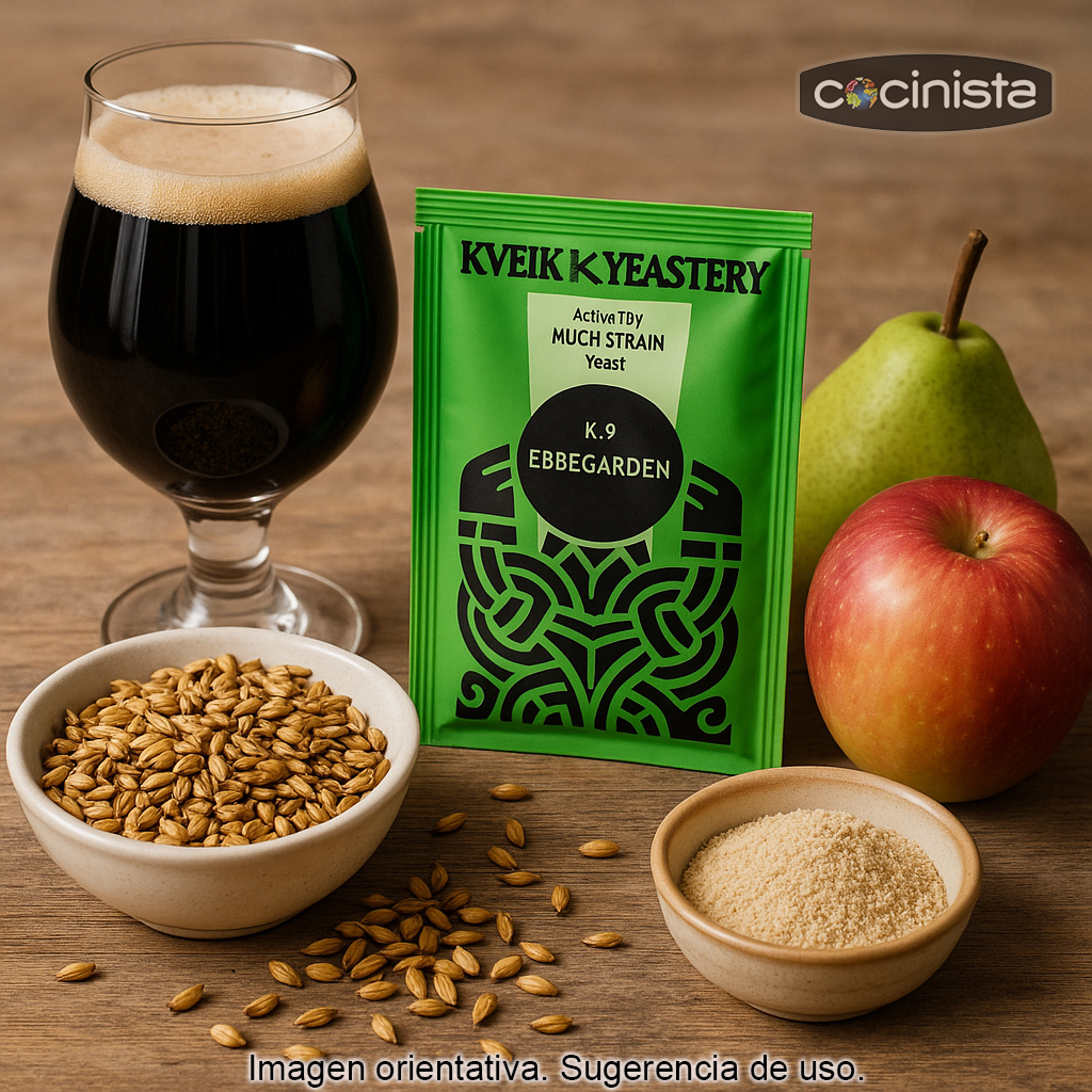 La K.9 Ebbegarden es ideal si buscas una levadura Kveik orgánica que fermente rápido, con un perfil afrutado agradable y un rango de temperatura muy amplio. Es perfecta tanto para cerveceros caseros que quieren simplificar el control térmico como para quienes desean experimentar con fermentaciones cálidas sin sacrificar calidad.