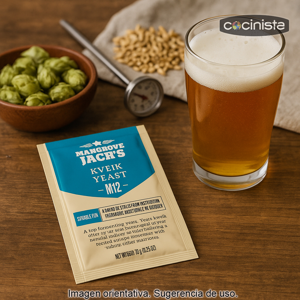 Gracias a su comportamiento estable en rangos amplios de temperatura, la M12 Kveik es ideal tanto para elaboradores que fermentan en condiciones menos controladas como para quienes desean acelerar el proceso sin sacrificar calidad. Su floculación muy alta ayuda a conseguir una cerveza más clara y facilita el trasiego y el embotellado.