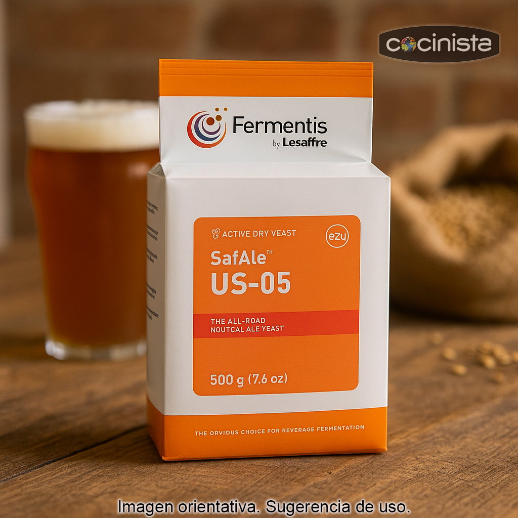 - Formato: 1 sobre de 500 g de levadura seca SafAle US-05 (marca Fermentis).