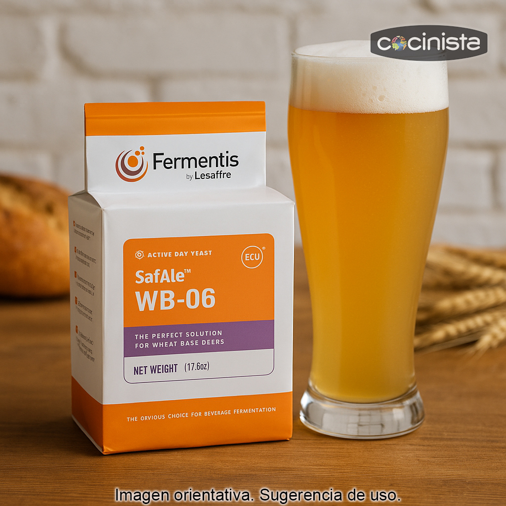 - Tipo: levadura seca activa para cerveza (Fermentis SafAle WB-06)