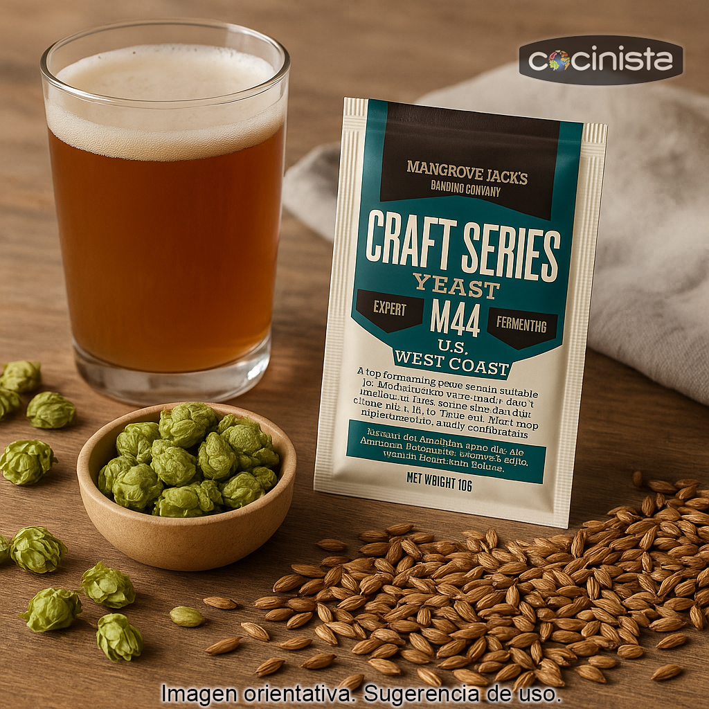 La levadura US West Coast Ale M44 es una levadura seca de fermentación alta (Ale) especialmente indicada para elaborar cervezas de estilo americano con un perfil limpio y una atenuación alta. Trabaja de forma fiable en un rango amplio de densidades de mosto y temperaturas, ayudando a conseguir cervezas con gravedad final baja y un acabado más seco, ideal para que el lúpulo se exprese con claridad.