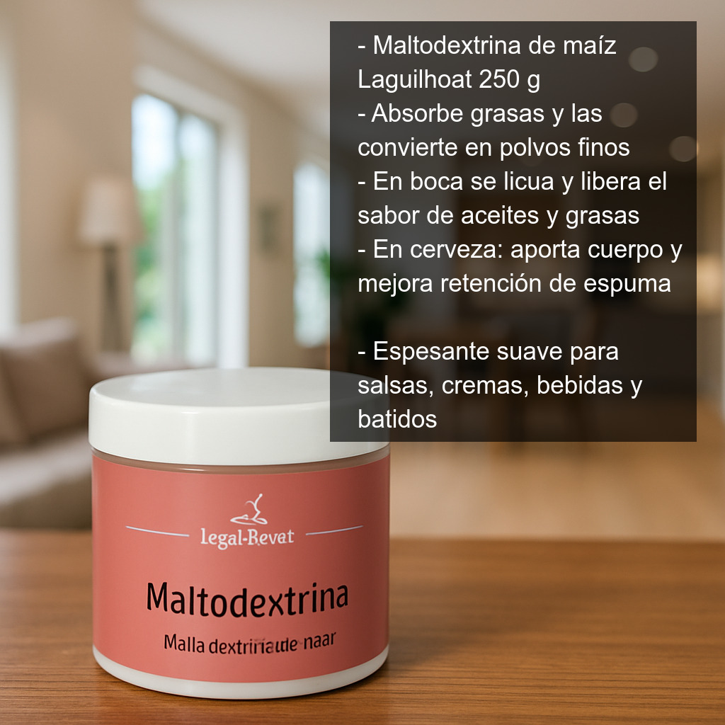 Además, la maltodextrina puede utilizarse como espesante y agente de carga en múltiples preparaciones: salsas, cremas, bebidas, batidos, papillas y elaboraciones donde se quiera ajustar la textura sin aportar un sabor dominante. También es habitual en cocina para ayudar a estabilizar mezclas y mejorar la consistencia de ciertas recetas.