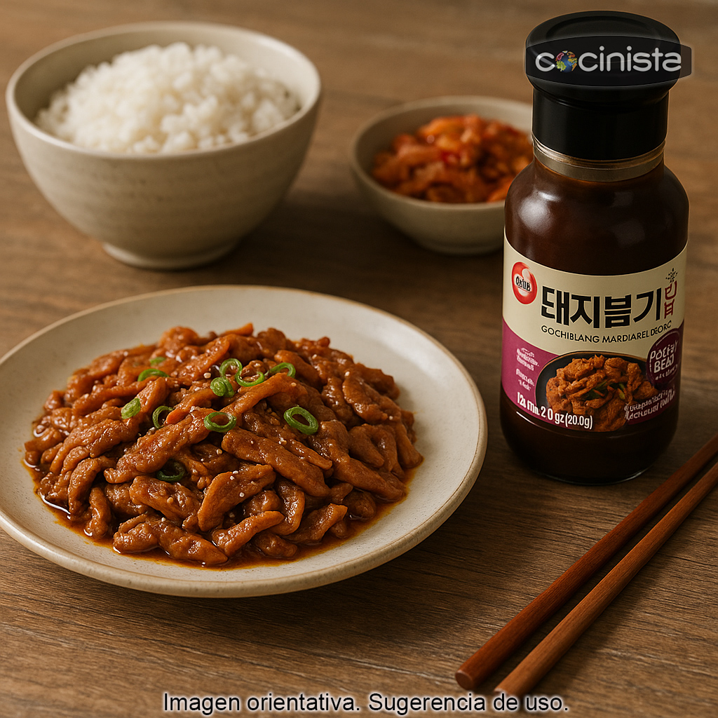 Si te gusta la cocina coreana, este marinado Gochujang Bulgogi es una forma sencilla y deliciosa de llevar a tu mesa el sabor auténtico del bulgogi, con un picante medio y un perfil aromático que combina a la perfección con arroz, verduras salteadas o kimchi.
