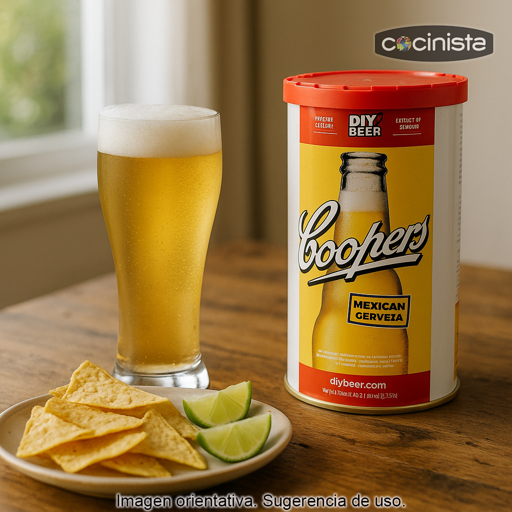 México es conocido por sus tierras áridas y su calor intenso. Por eso no sorprende que su cultura cervecera haya dado lugar a cervezas especialmente pensadas para refrescar: ligeras, limpias y muy fáciles de beber. Con el kit Mexican de Coopers (1,7 kg) podrás elaborar en casa una cerveza inspirada en las mejores lager mexicanas, perfecta para disfrutar bien fría.