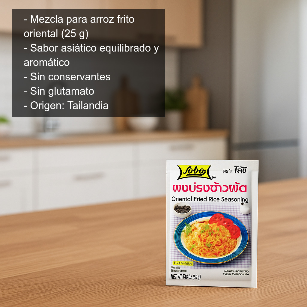 - Formato: 25 g (ideal para aromatizar y sazonar un salteado de arroz).