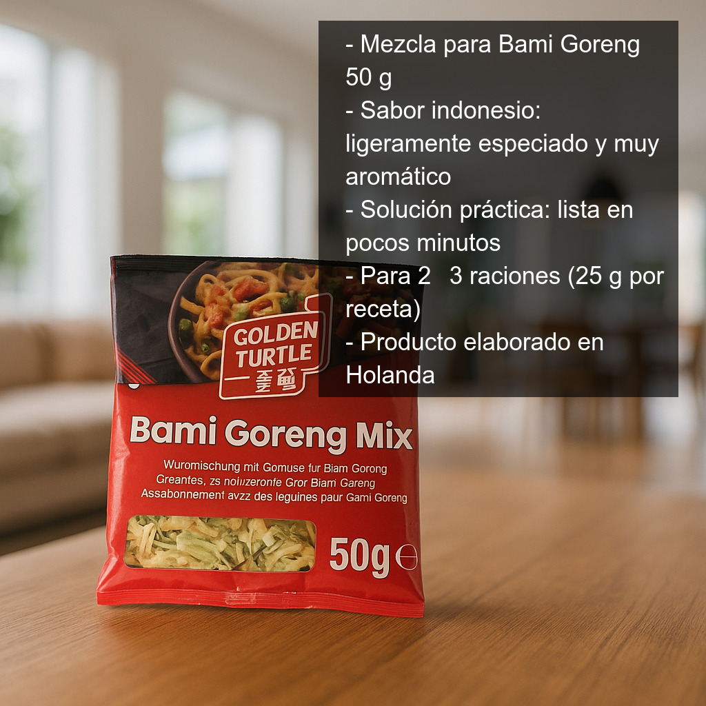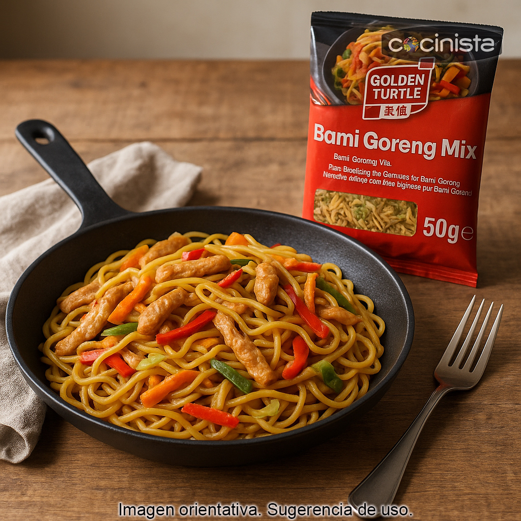 El Bami Goreng (también conocido como “mie goreng” en algunas variantes) es un plato clásico del sudeste asiático: fideos estilo chino salteados en wok o sartén con carne, verduras y una salsa especiada. Con esta mezcla podrás reproducir el sabor tradicional de forma fácil y consistente.