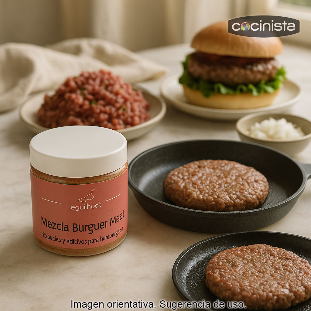 Al añadirla a la carne, obtendrás hamburguesas con un perfil de sabor equilibrado y un acabado profesional, perfectas para preparar en plancha, sartén,