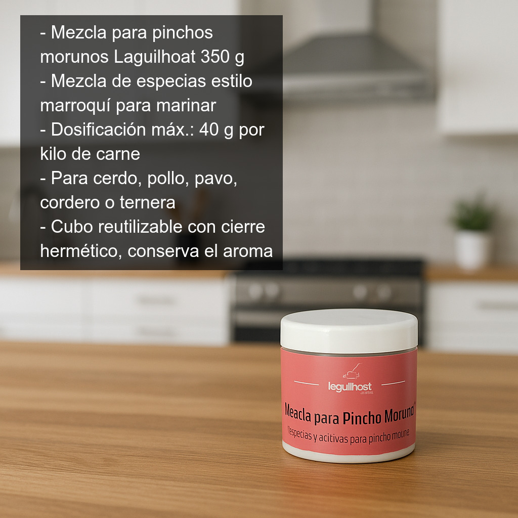 Prepara en casa unos pinchos morunos llenos de sabor con esta mezcla de especias estilo marroquí. La Mezcla para hacer pinchos morunos Laguilhoat (350 g) está pensada para marinar carne de forma rápida y uniforme, consiguiendo ese aroma característico de los pinchos a la parrilla: especiado, ligeramente cálido y muy apetecible.