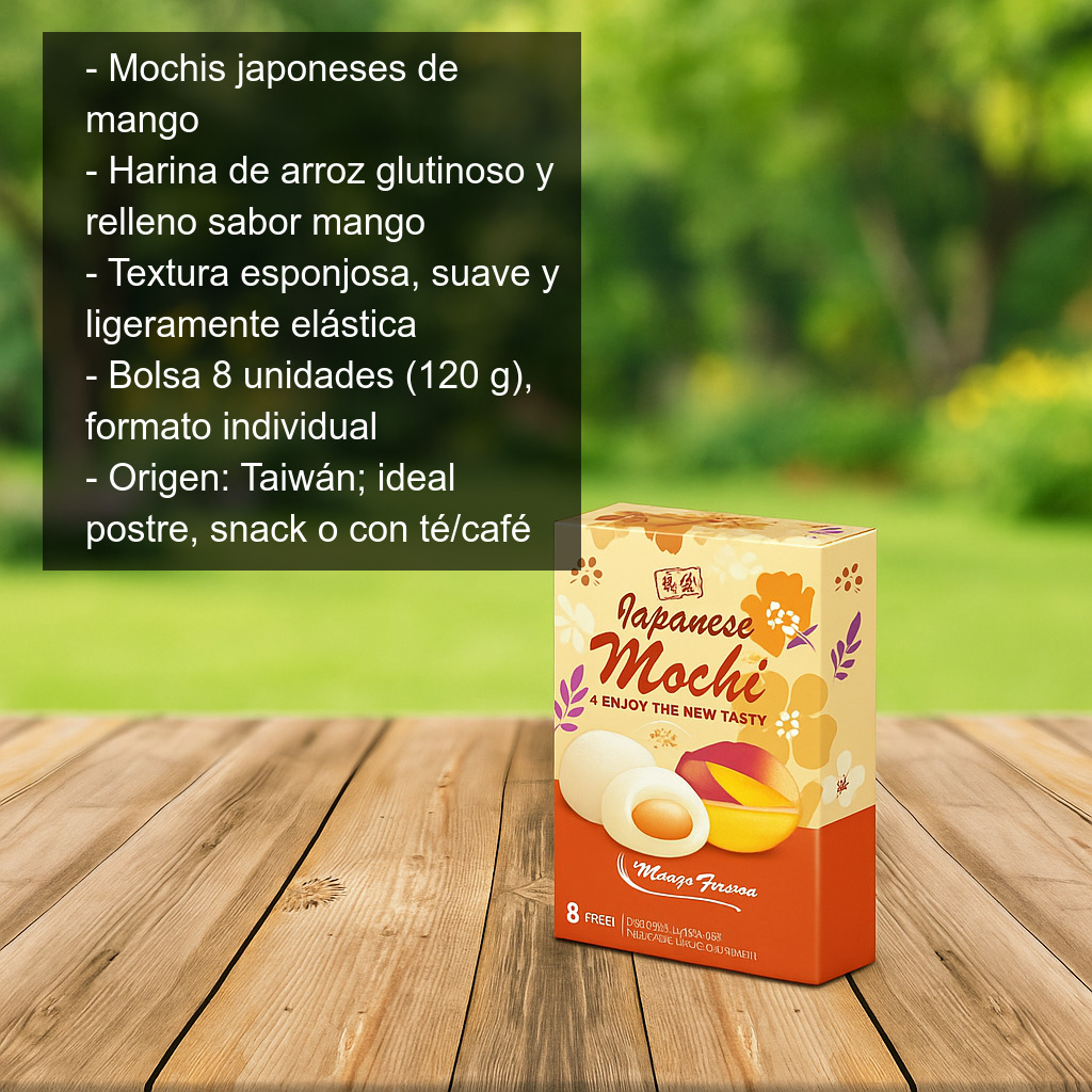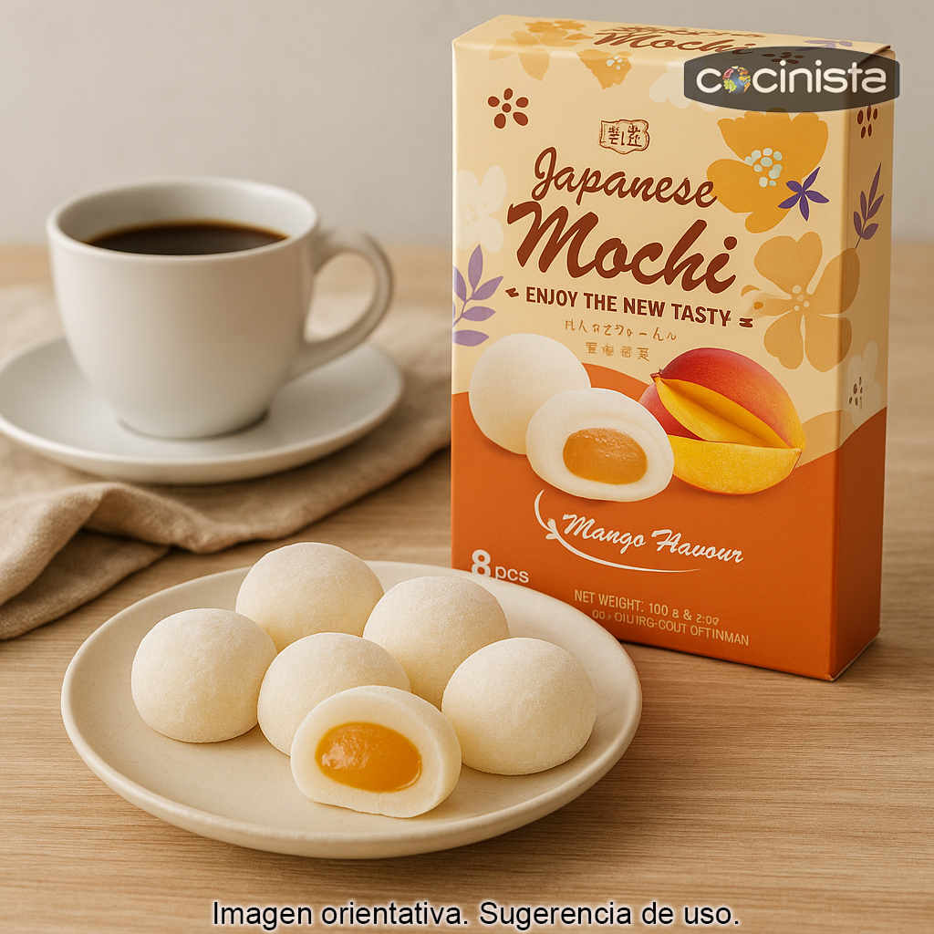 Disfruta de un bocado dulce y exótico con estos mochis de mango, un postre de estilo japonés elaborado con harina de arroz glutinoso y un delicioso relleno con sabor a mango. Su textura es la clásica del mochi: esponjosa, suave y ligeramente elástica, perfecta para quienes buscan un dulce diferente y muy agradable al paladar.