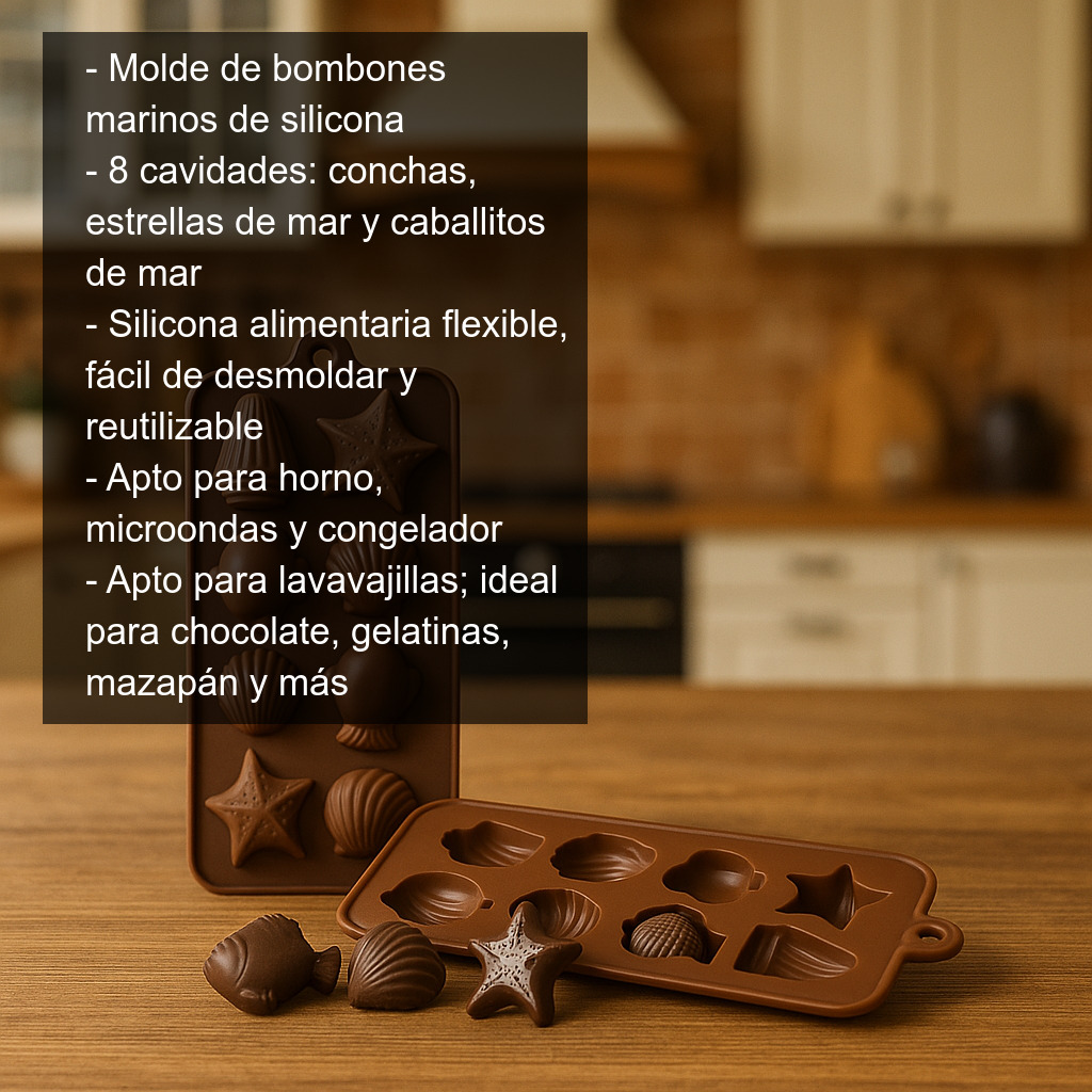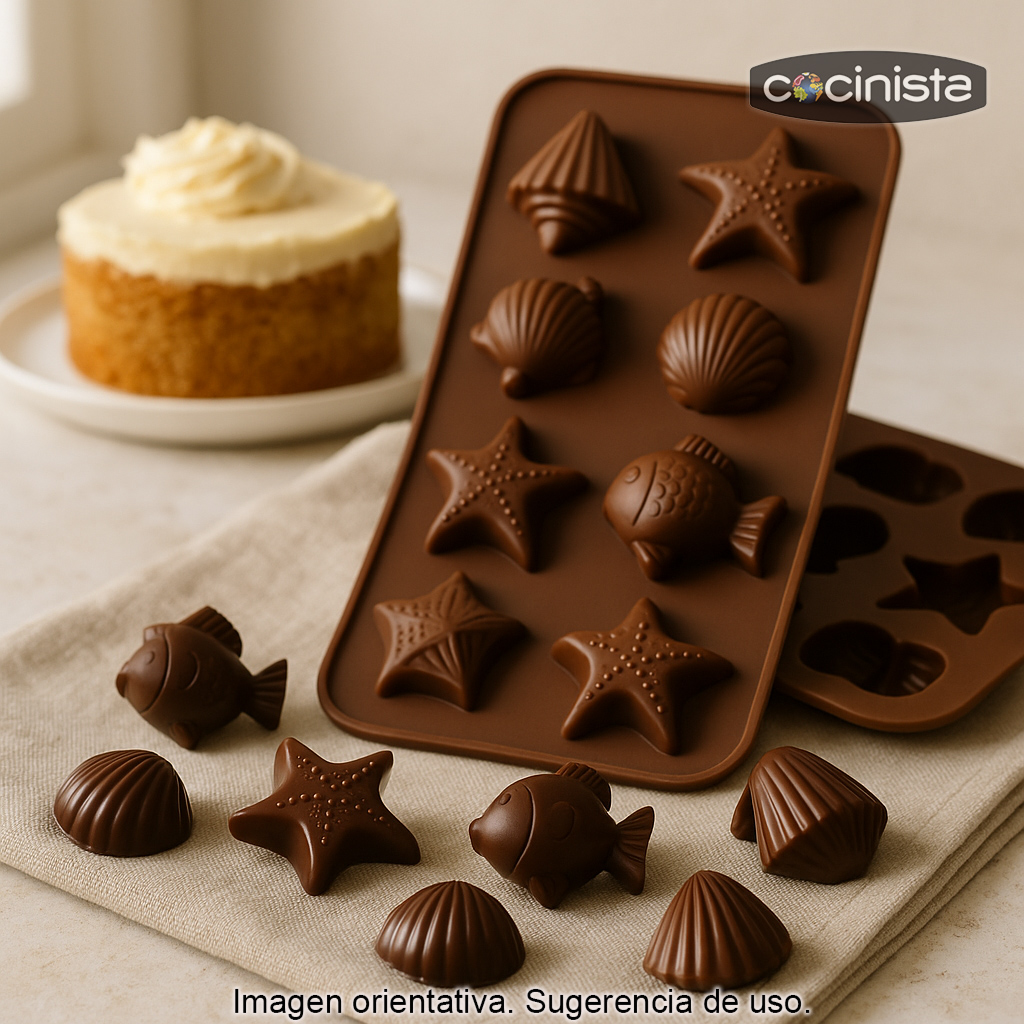 Un molde práctico, resistente y muy decorativo para quienes buscan un molde de bombones original con el que crear dulces temáticos inspirados en el mar.