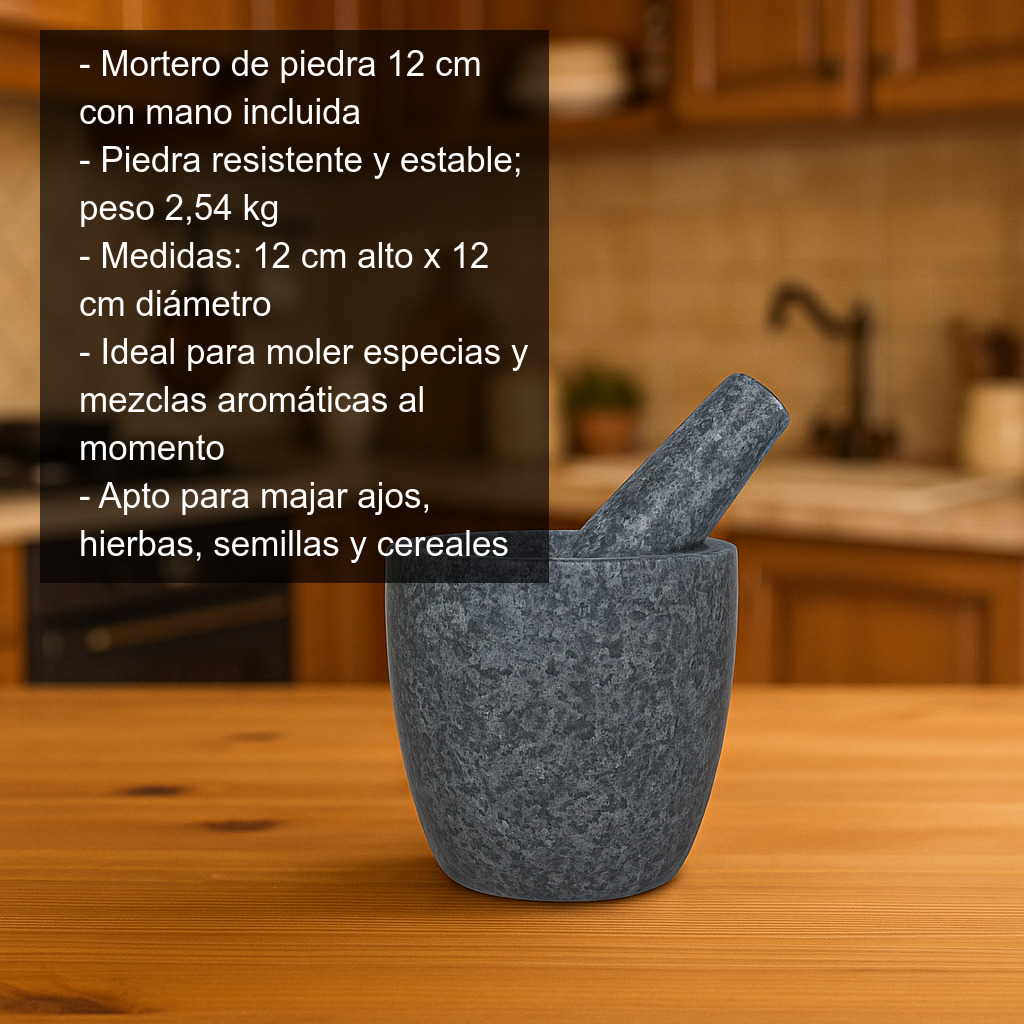 - Incluye: mano de mortero de piedra.