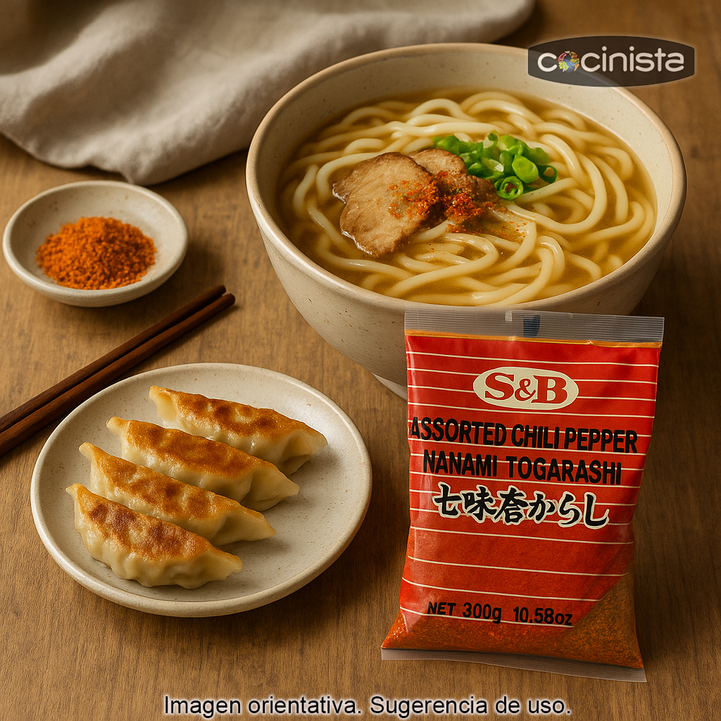 Su sabor combina el picante del chile con notas aromáticas y tostadas, ideal para dar un acabado auténtico a recetas japonesas. Espolvorea una pequeña cantidad y ajusta al gusto.