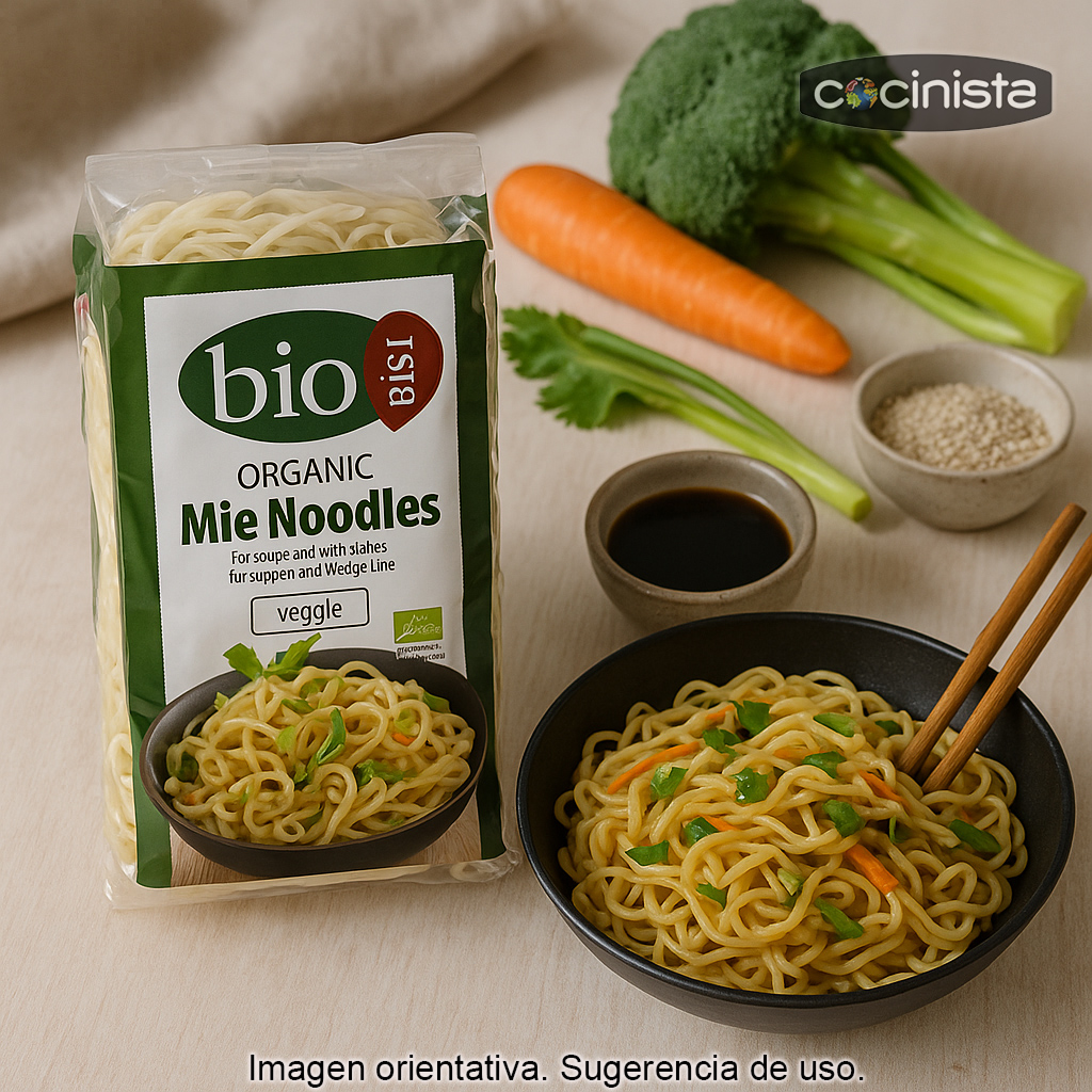 Los noodles o fideos asiáticos son un básico imprescindible en la cocina oriental, ideales para preparar sopas, salteados en wok y platos rápidos llenos de sabor. Estos fideos son del tipo Mie, una variedad muy popular en la gastronomía china y del sudeste asiático por su textura agradable y su versatilidad en recetas tanto suaves como intensas.