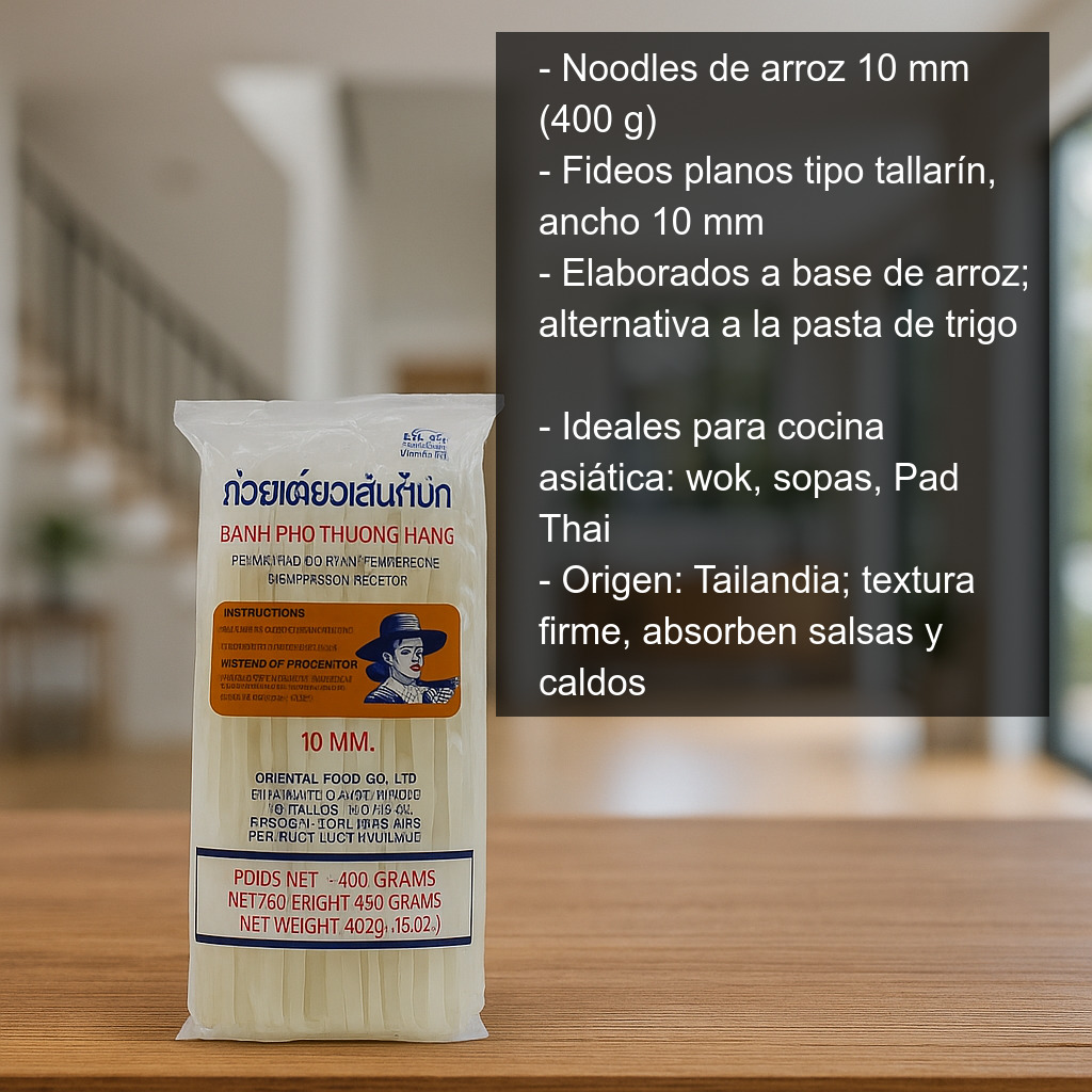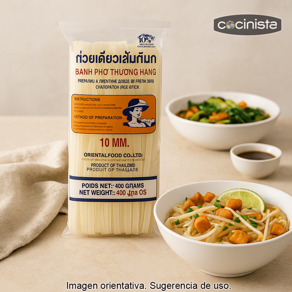 - Tipo: fideos de arroz planos tipo tallarín