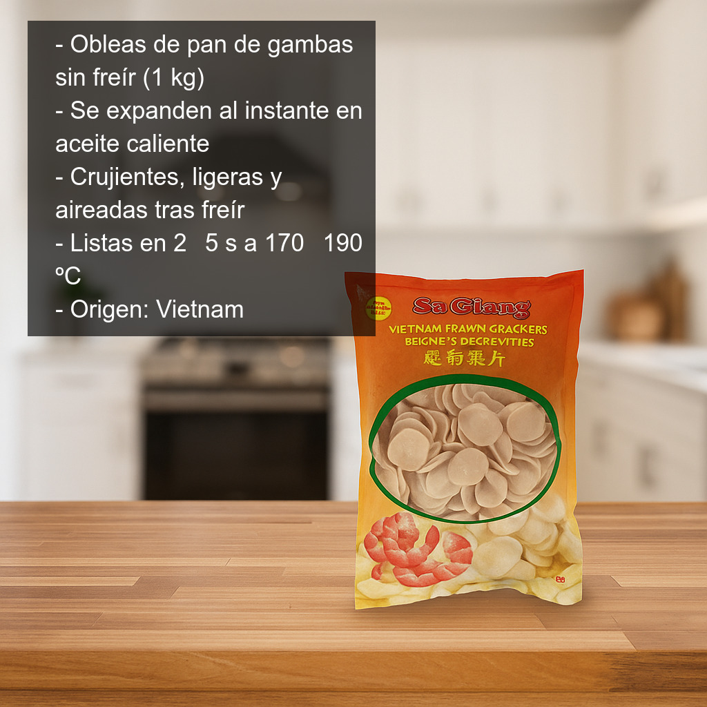 - Presentación: bolsa con 1 kg de obleas de pan de gambas sin freír.
